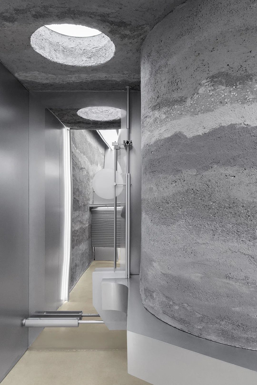 矩形的灯格营造出洞穴居住气氛,原始质朴的生活方式让人更能关注到自己内心的声音。