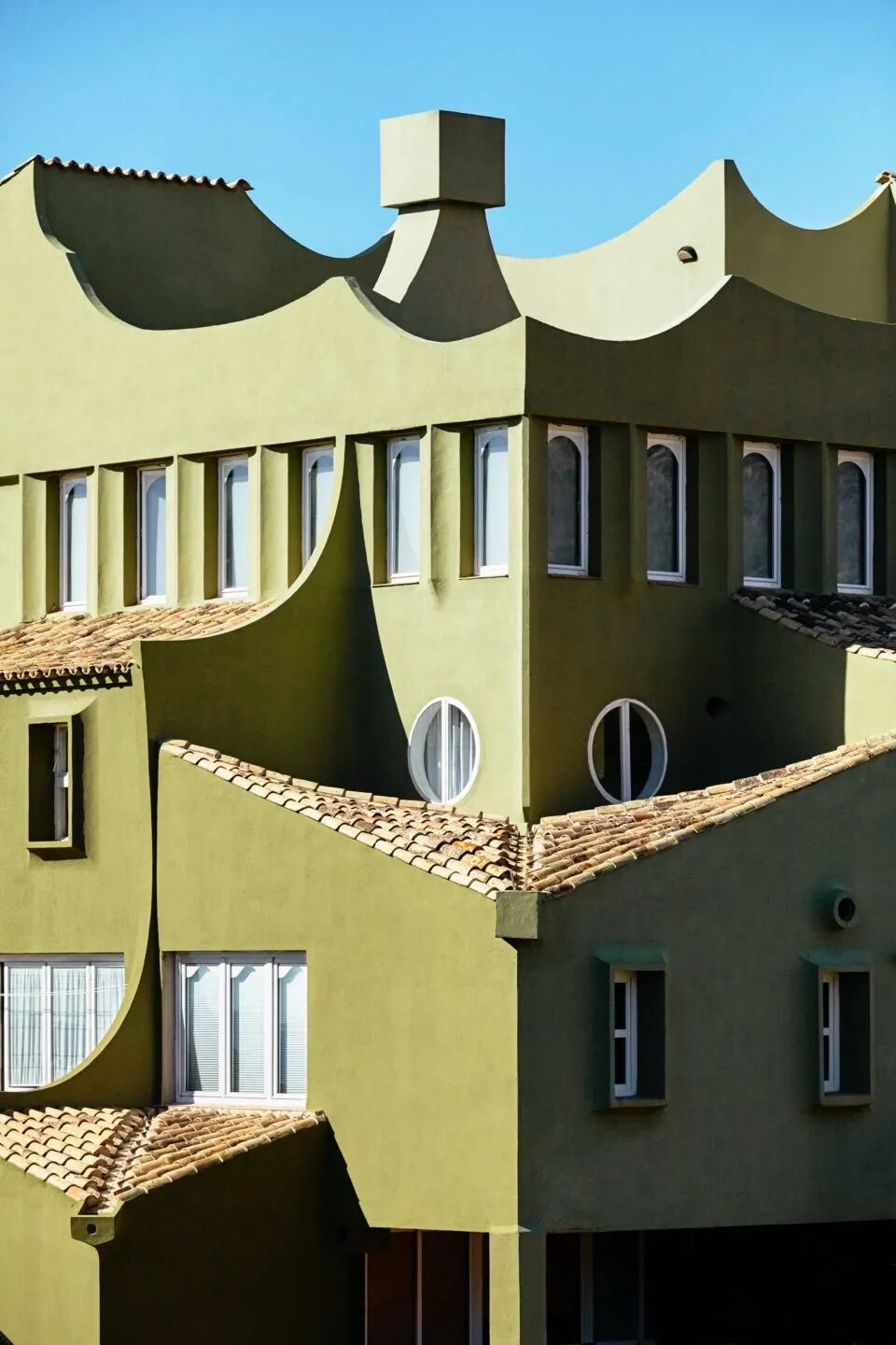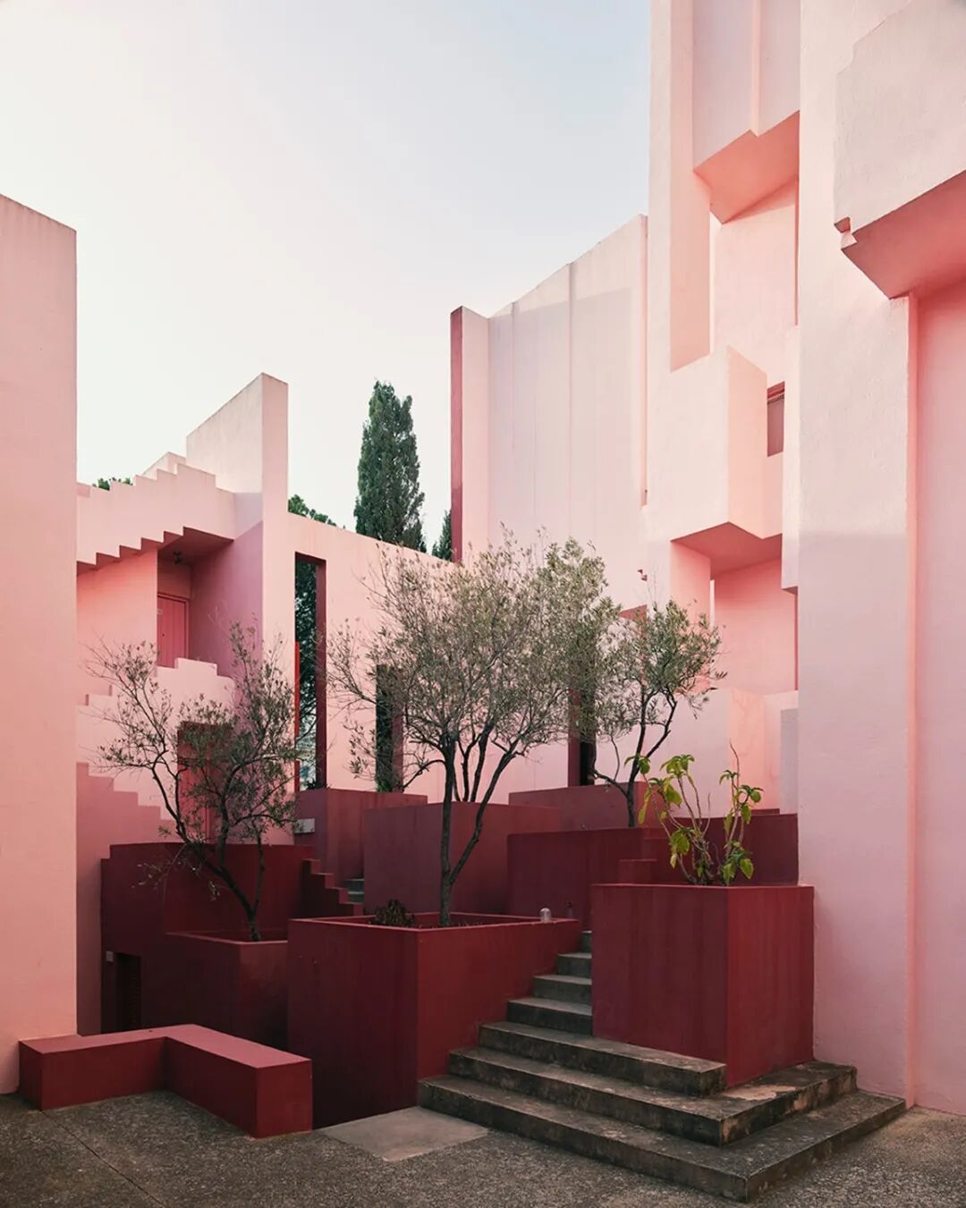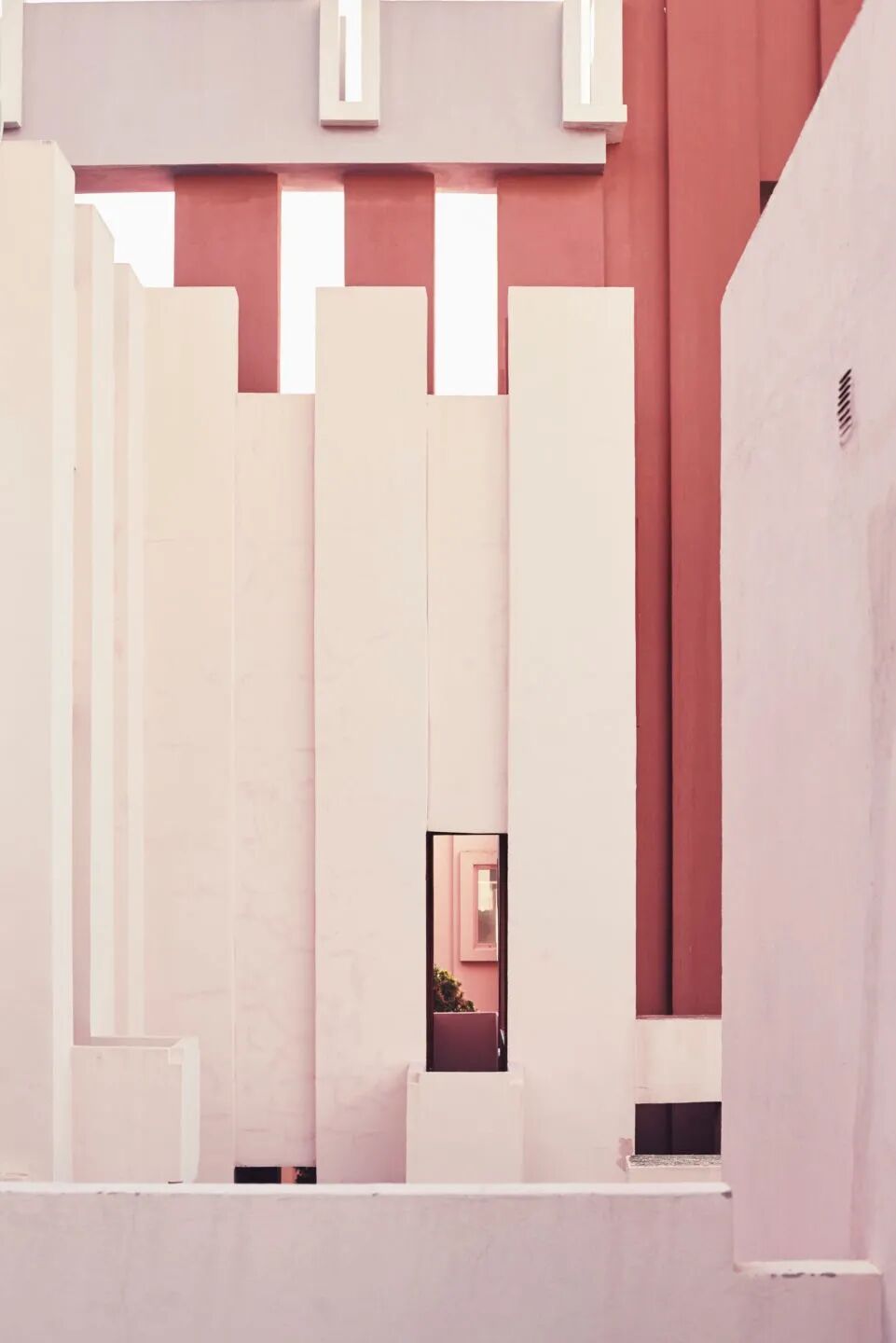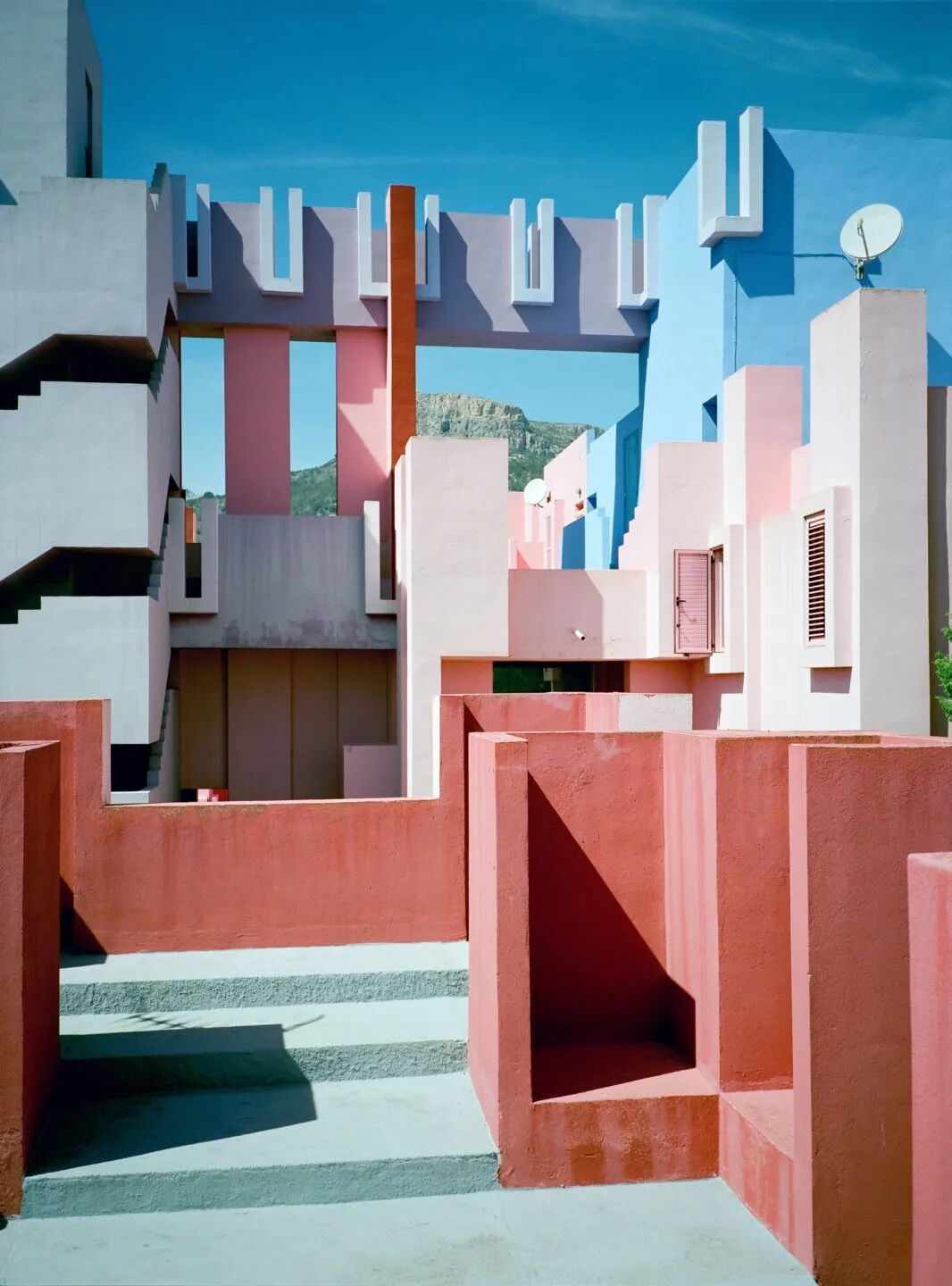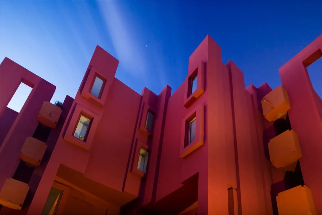 La Muralla Roja(“红墙”)从西班牙 Costa Blanca 的 Calpe 岩石悬崖上拔地而起,可能是他最惊险的作品。与“瓦尔登7号”有着明显的相似之处,La Muralla Roja 是一座雄伟的城堡般的建筑,隐藏着令人眼花缭乱错综复杂的彩色走廊、开放楼梯、公寓和户外空间。