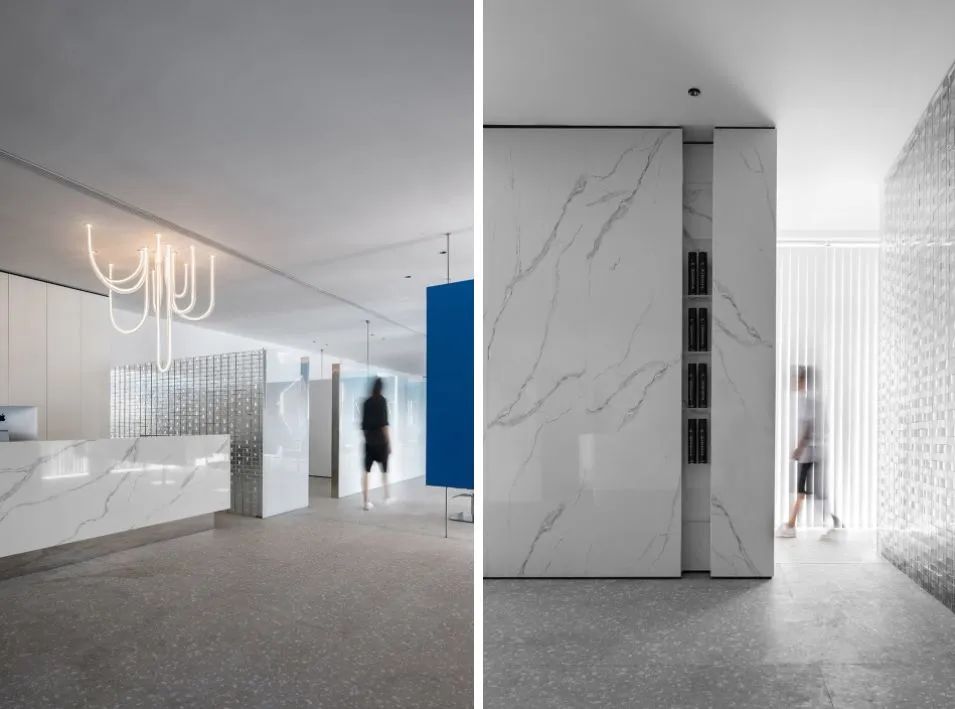 玻璃砖在空间设计中通常作为隔断、屏风,它半透明的效果保证了私密,同时也能用来装饰遮隔和分割空间。玻璃砖通常用于砌墙,可以独立成为墙体,当然也可以配合其他墙体起透光、装饰的作用。