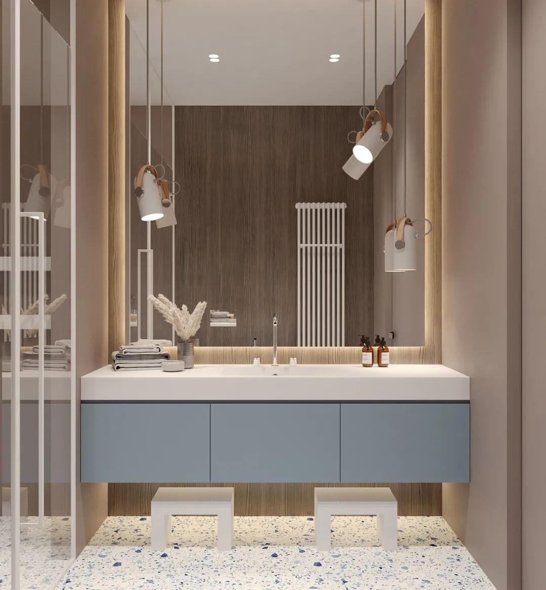 悬浮设计的核心是便于打扫,卫生间最头疼的问题莫过于气味和清洁问题了,悬浮浴室柜可以更好的清洁卫生死角。做好干湿分离加上悬浮浴室柜,卫生间的卫生问题迎刃而解。