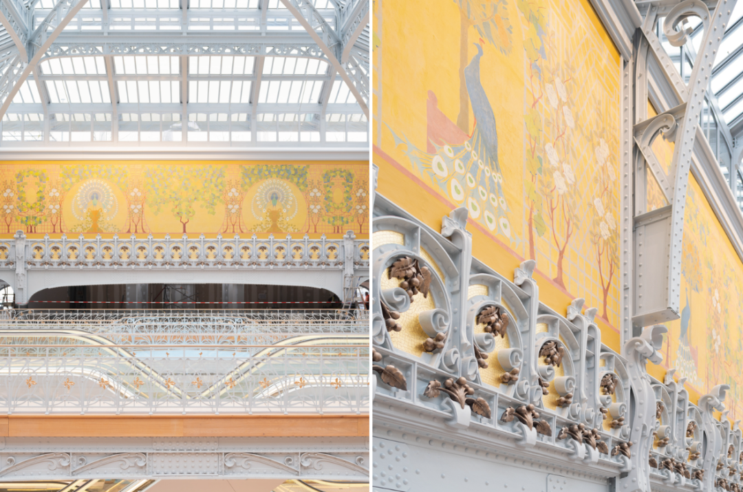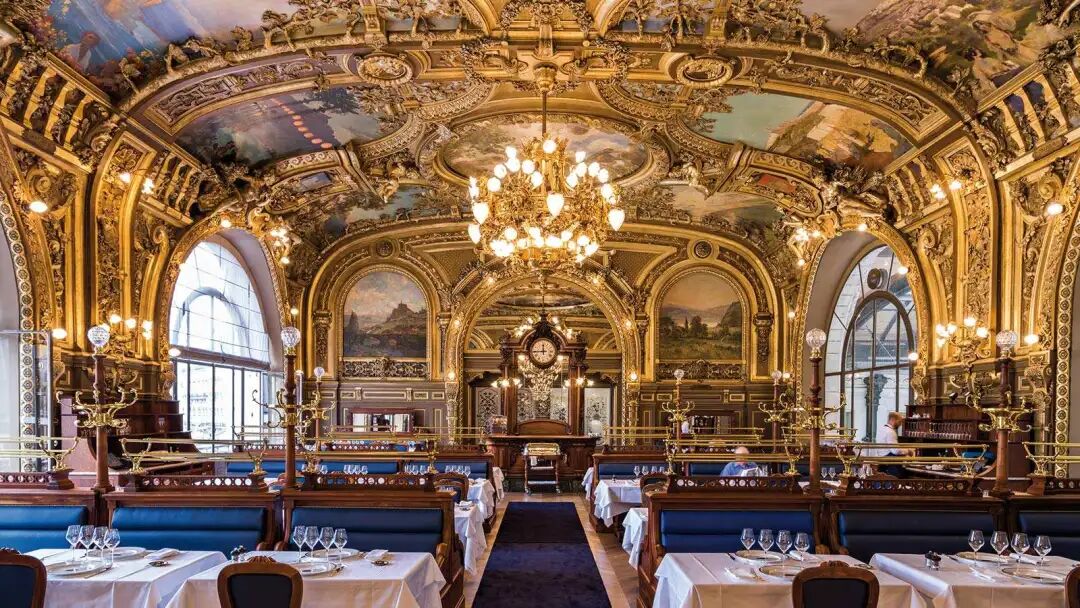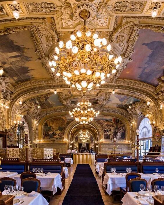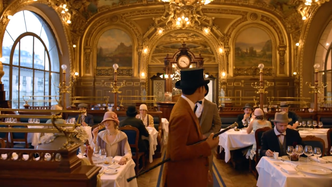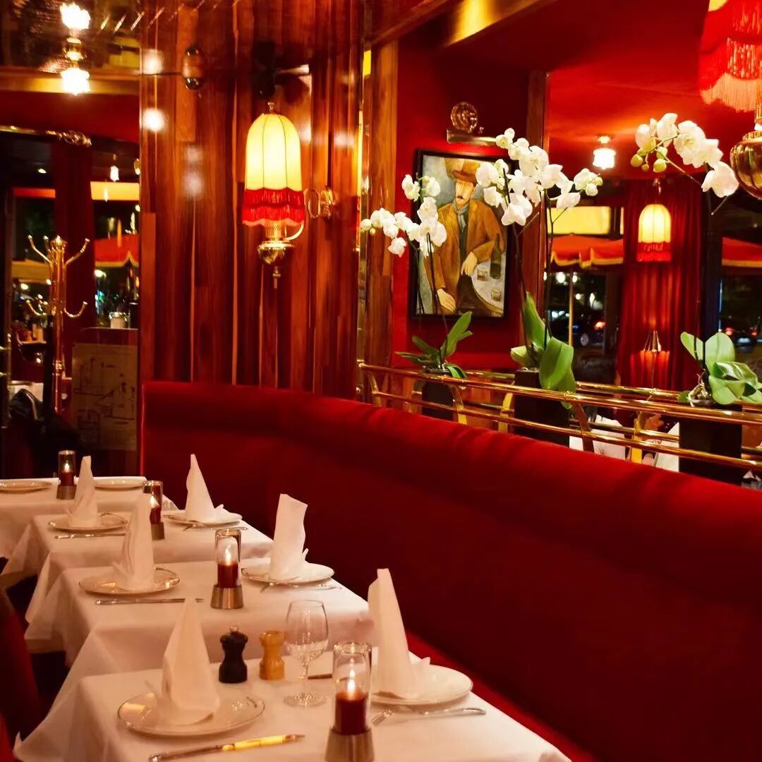 流光溢彩的墙壁天花,柠檬木的餐椅,大红色的幕布,天鹅绒沙发,充满了20年代的梦幻色彩,诉说着巴黎的种种风情。