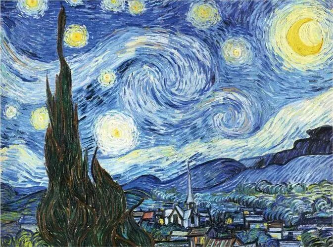 这里指的是大家耳熟能详的梵高作品,绘制于 1889 年的 《星月夜》。