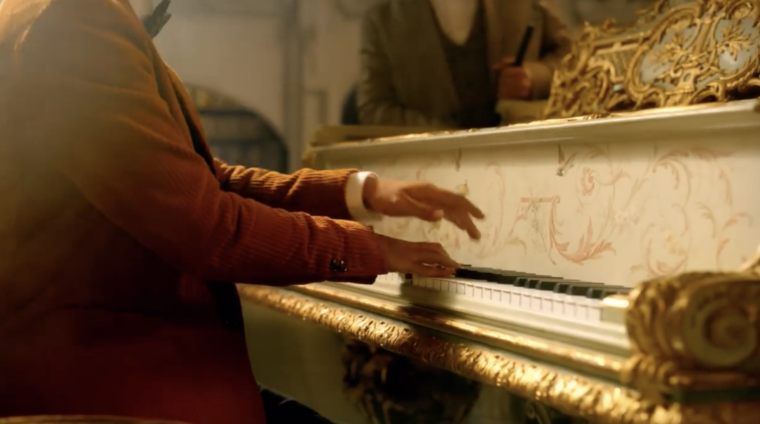 首先是在 MV 中存在感最强的这台华丽的古董钢琴,根据周杰伦油管发的创作纪录片。这台钢琴和他巴黎旧货市场试用的十分相似,价值 100 多万欧元,近 700 万人民币。