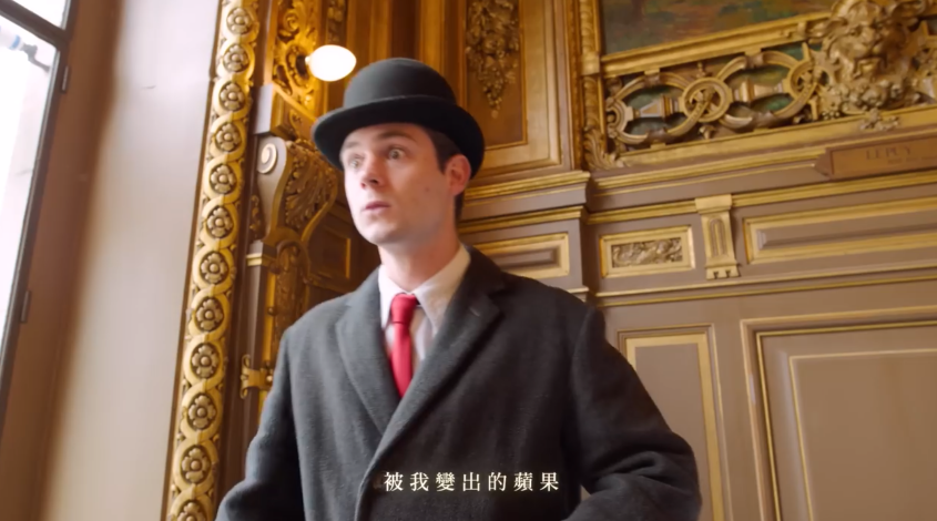 歌词:“偏执那是玛格丽特被我变出的苹果,超现实的是我原本还是他想画的小丑,不是烟斗的烟斗,脸上的鸽子没有飞走。”