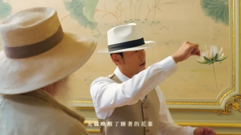 莫奈最著名的画作莫过于他的《睡莲》,事实上,莫奈的绘画理念、技法受东方艺术特别是中国画的影响非常大。因此杰伦有意设计,在洛可可风格的环境背景下,巧妙融合了中国传统工笔画的睡莲图,让东西方元素产生精妙的碰撞。