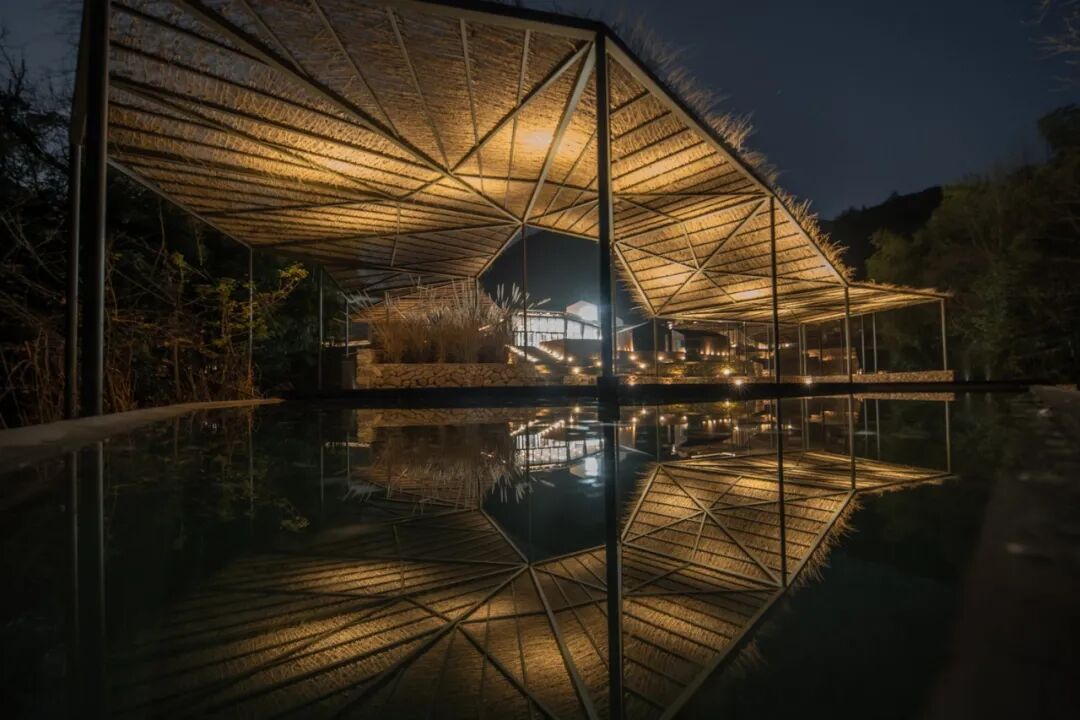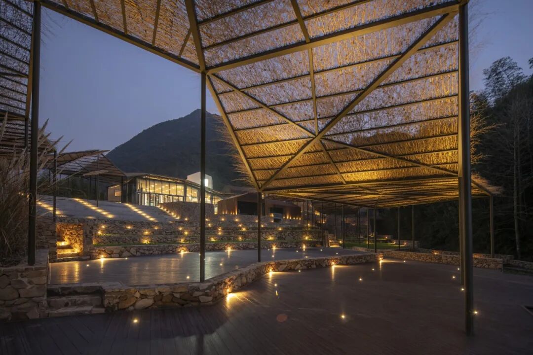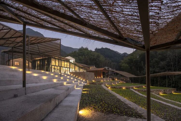 建筑设计的灵感来源于项目的基地本身,尤其是那些弥漫在整个村庄的云和雾。它们就像漂浮在空中的建筑,或者说,像漂浮的屋顶,连接着自然、建筑,以及周遭不同区域的景色。连续的梯田本身自带一种建筑感,让整座村落变得很有活力。因此建筑师提议将漂浮的屋顶做得像云一样,圈起整个自然景观,让风景成为建筑的一部分。