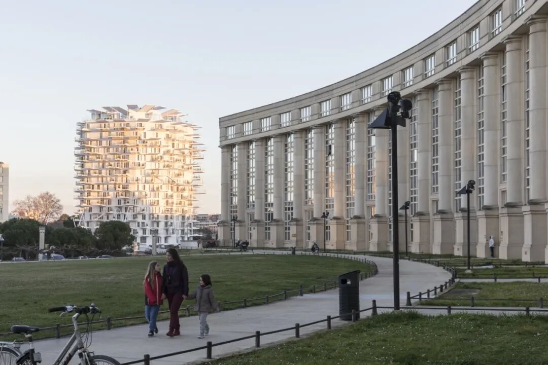 阳台的比例突显了户外空间,就像折叠起来寻找阳光的树叶一样。这些宽敞的阳台也是解决环境方案的一种方法,这些方案与 “南方生态环境”相适应。它们为立面形成了一个有效的保护罩,提供了必要的遮阳,并能够破坏斜风的影响,让空气能够更和谐地流通。这座住宅也是一次综合用途的开发利用,开放性的公共空间治愈了高塔综合症,包括沿着勒兹河延伸的景观公园。