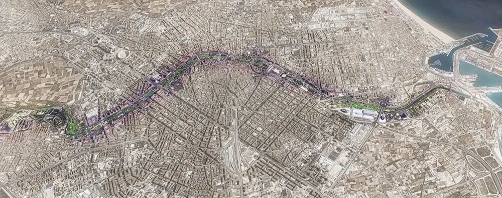 1988年,瓦伦西亚政府发布城市规划方案,提出「向海洋发展」的战略,希望通过图里亚河河道线性公园的改造,将老城区与滨海地区连通,塑造一个有向心力的城市中心。