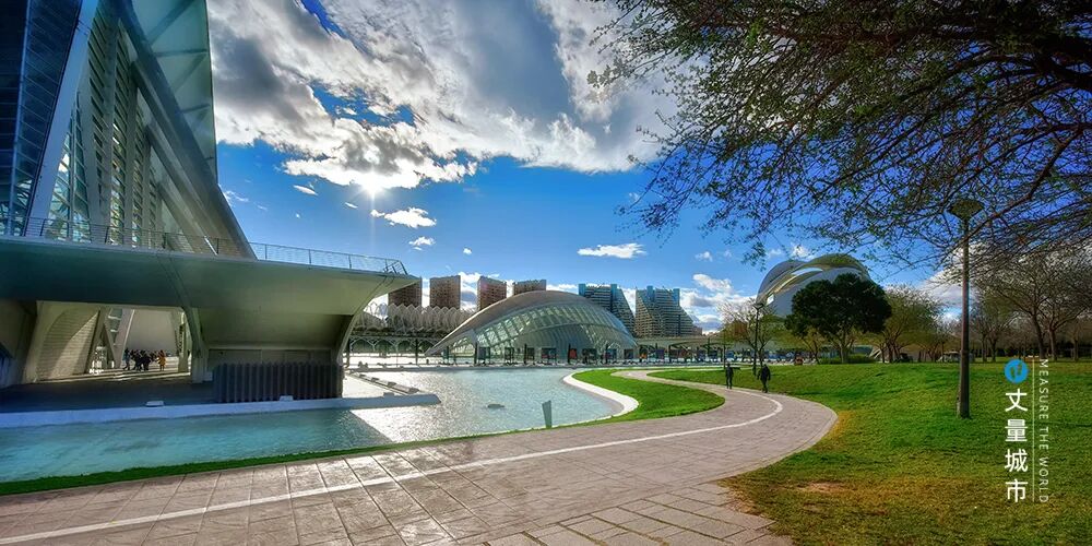 充满未来主义的艺术科学城,与周边的老城区形成强烈反差,成为城市对外宣传的核心,影视剧里的常客,西班牙的旅游名片,被誉为「西班牙十二件宝藏之一」。
