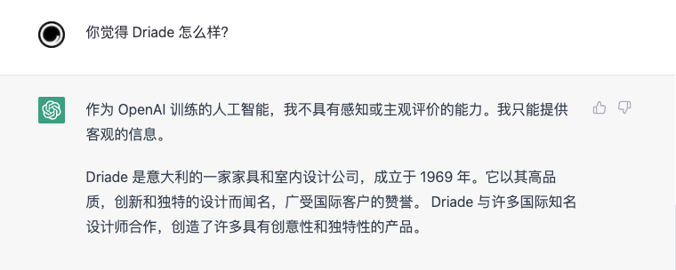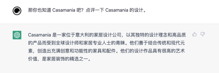 ChatGPT 引起了新一轮的风暴。从科研到工作,从艺术知识到生活百态,ChatGPT 仿佛几乎无所不知。关于设计和家具,ChatGPT 知道多少?我们和 TA 聊了聊 GDD 旗下代理的众多品牌。