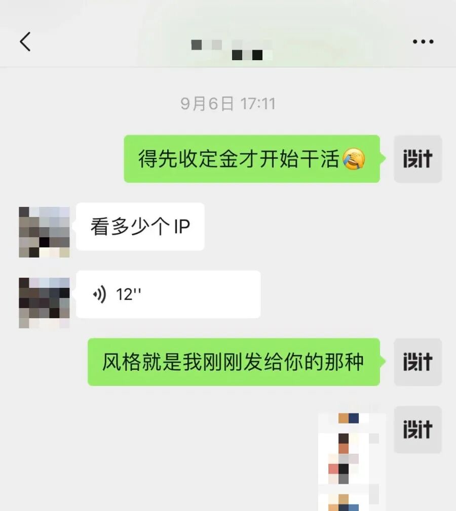 这个时候我会问需要设计什么,要设计的数量,还有设计的风格等等,在还没有确定的时候千万不要聊太深入,聊到你觉得知道客户需要设计什么了,那么这个时候你就要报价给客户了。