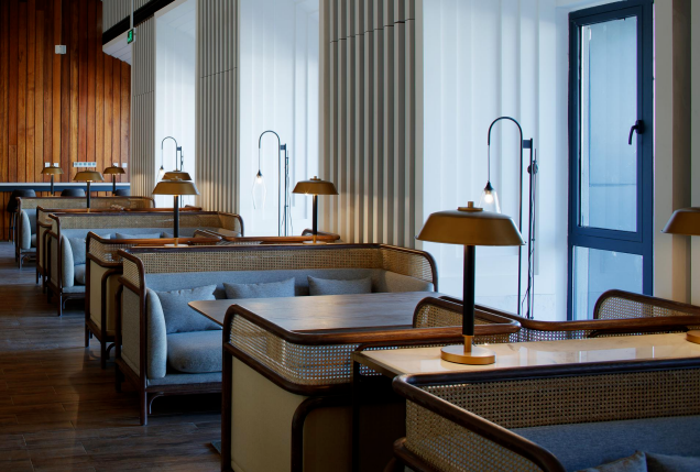 号称亚洲第二大的浙江大学紫金港食堂,室内及家具设计皆由吴屹主持。室内设计的部分完成后,因为没有适配的家具,他又受校方委托,为食堂设计风格气质相投的家具。他发现当时流行的宽600mm的桌子,并不能满足实际应用中两个餐盘的摆放,便将餐桌宽度增加到700mm。看似小小改变,却突破了当时固定材质的局限,激发了他对座椅的灵感。结余的材质被他用来制作相同长度的长椅,用长条椅取代传统的食堂中圆形椅凳,利用座位中间的空隙,解决学生下课后携带物品的放置问题。当下看似无奇异造型的一套桌椅组合,当时却成为颠覆整个行业的创新。大小学校,高速公路,公共食堂等各种场景争相跟风,甚至带火了当时的加工厂。时隔二十年的当下,这样的家具形式仍在使用。