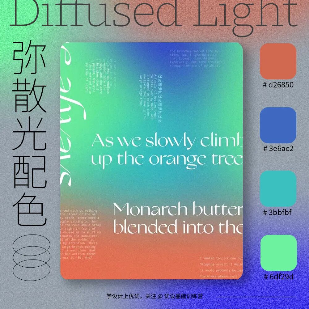 设计色调单一画面呆板?试试加点渐变弥散光吧!不仅能使画面活跃,而且还能增强作品的设计感哦!分享 9 组渐变弥散光配色!即存即用~