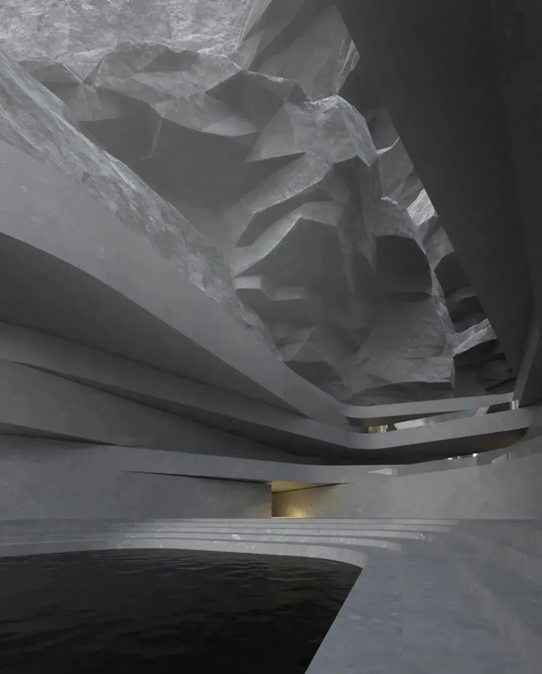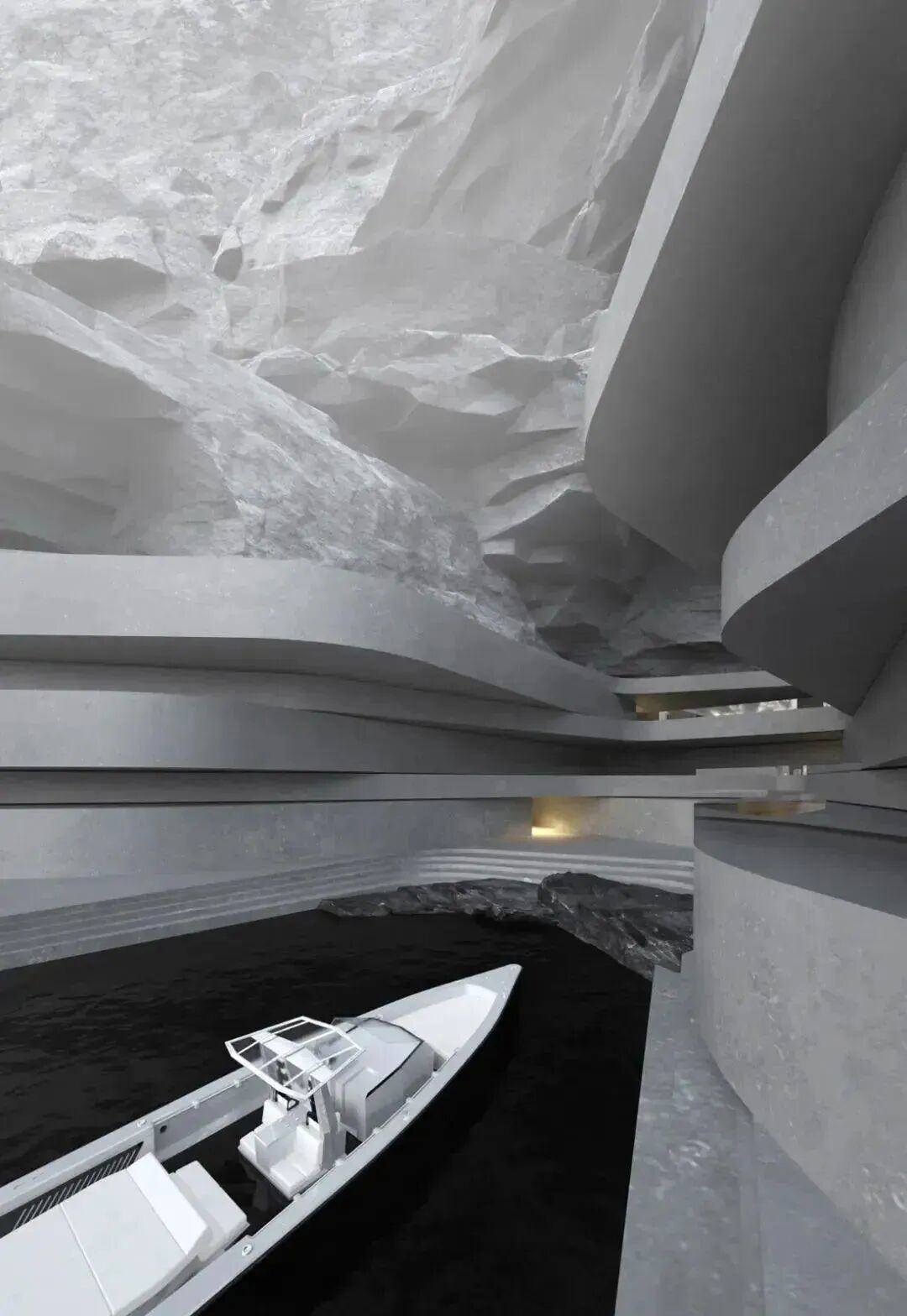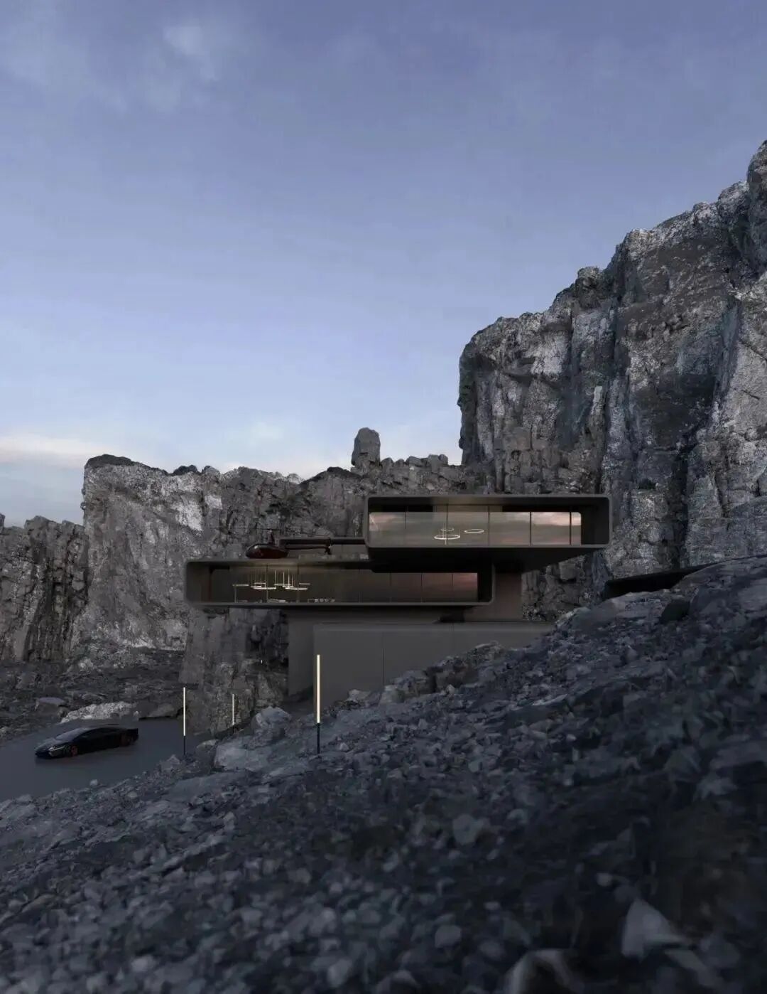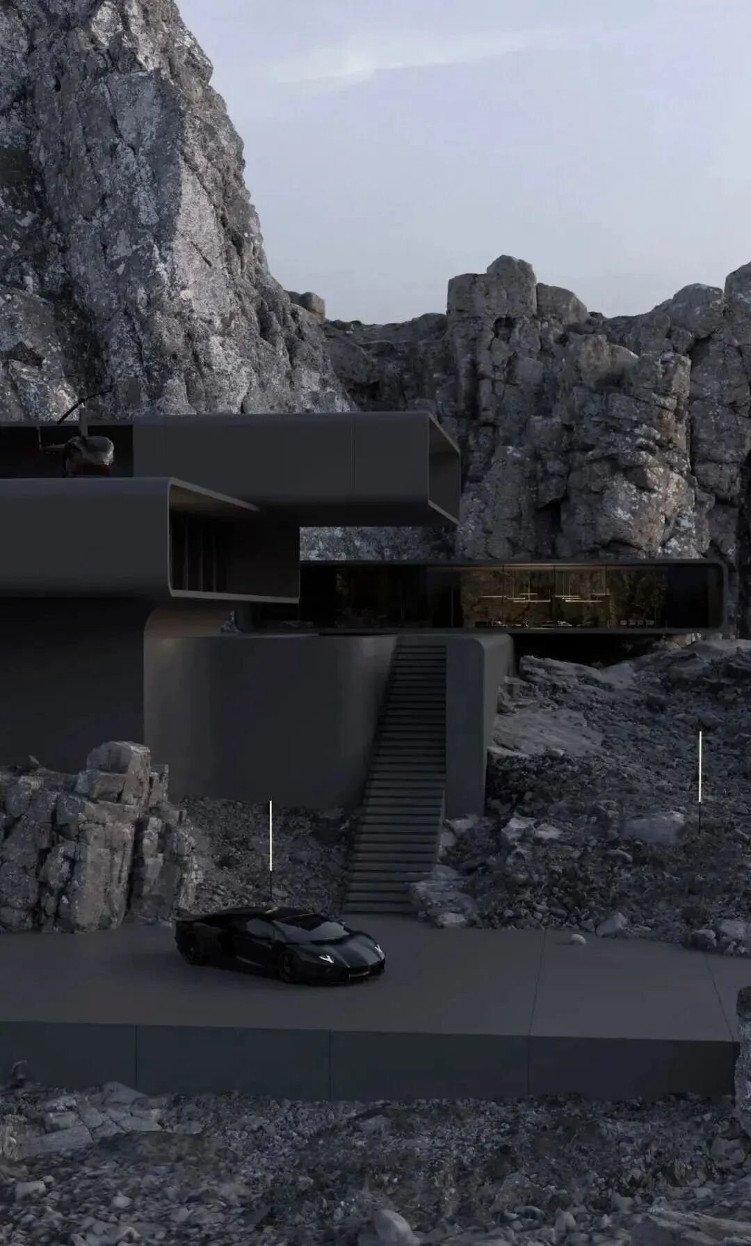 山岩、峭壁林立,自然与人造结构刚性之间的并置,突出了建筑的美感。