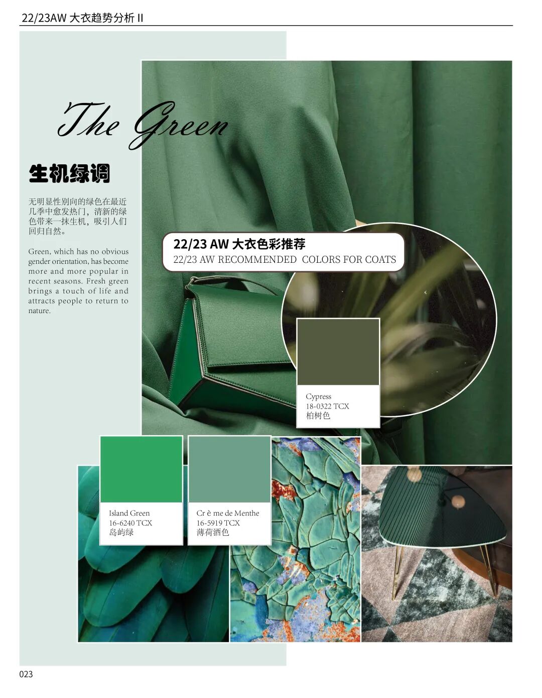 绿色:无明显性别向的绿色在最近几季中愈发热门,清新的绿色带来一抹生机,吸引人们回归自然。