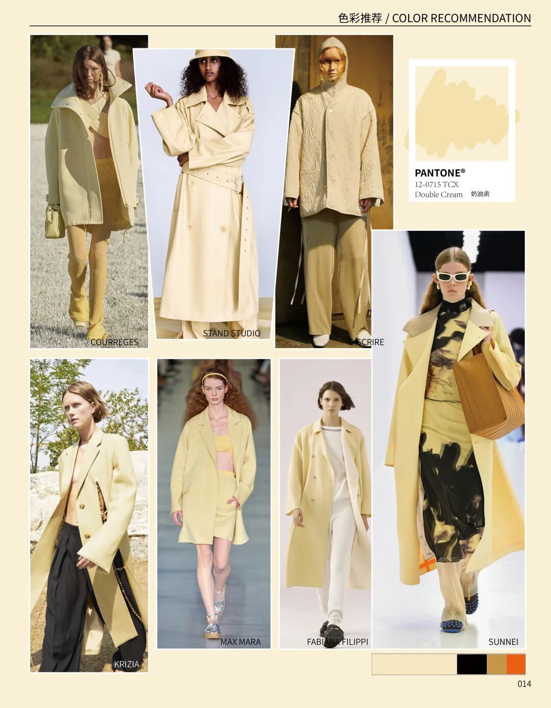 黄色:黄色调主要是从高饱和度向低饱和度演进,其中高明度且低饱和度的淡黄色,仍然具有广泛的青睐,柔和甜美清澈治愈。
