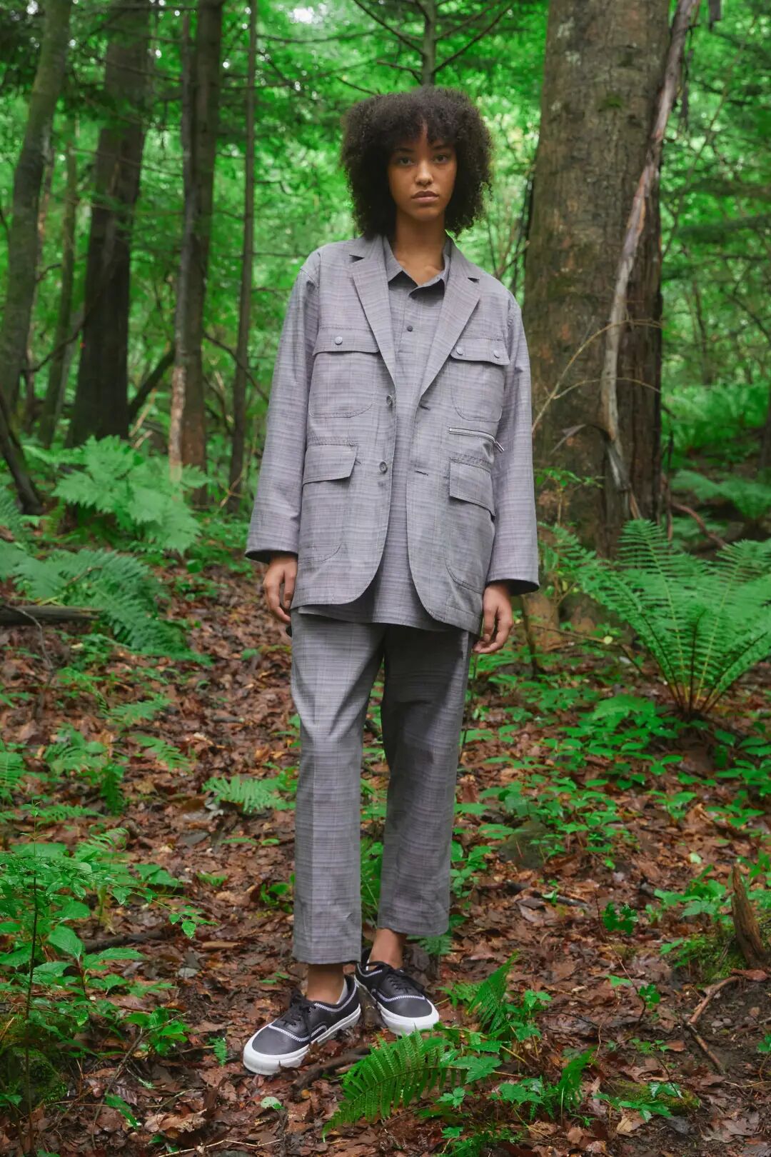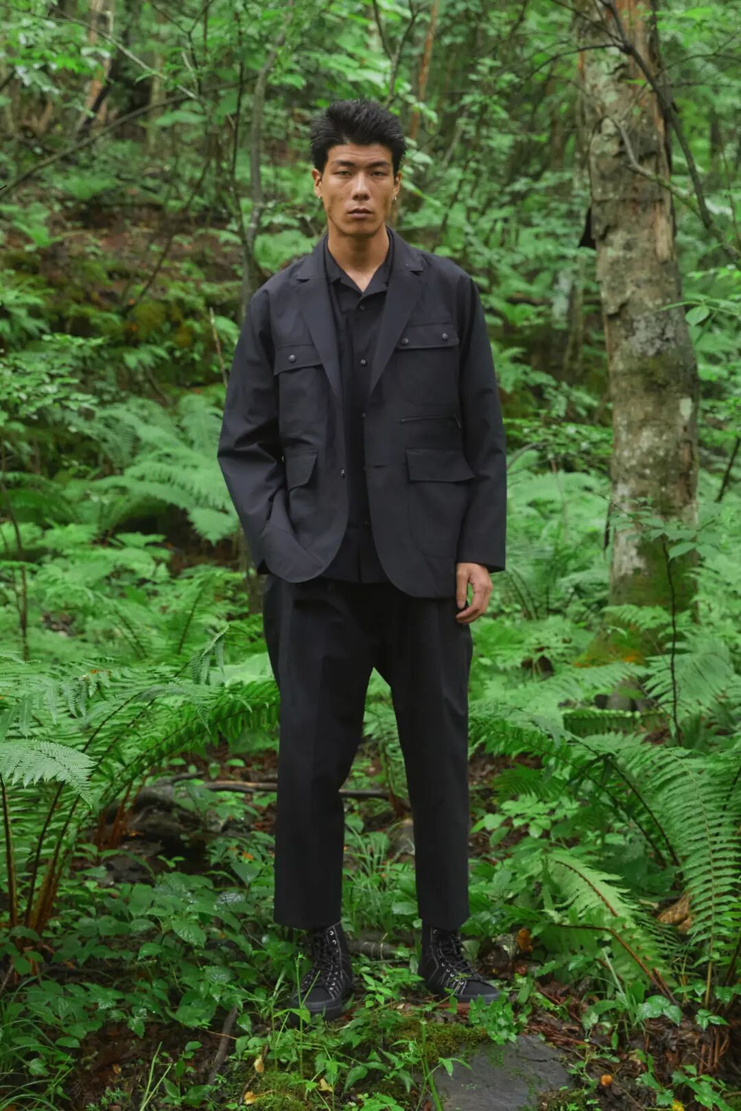 White mountaineering 这一季回归质朴的的设计,设计师 AIZAWA 较低程度的运用了高科技材料,与休闲便西夹克相结合打破了传统硬核技能风,反而在整体面料和元素上都以“低科技”的感觉呈现,从专业户外好手化身为低调山居者的造型,增强了服装的舒适性与实用性。用设计师自己的话来说,要创作一个每个人都适合穿的系列。