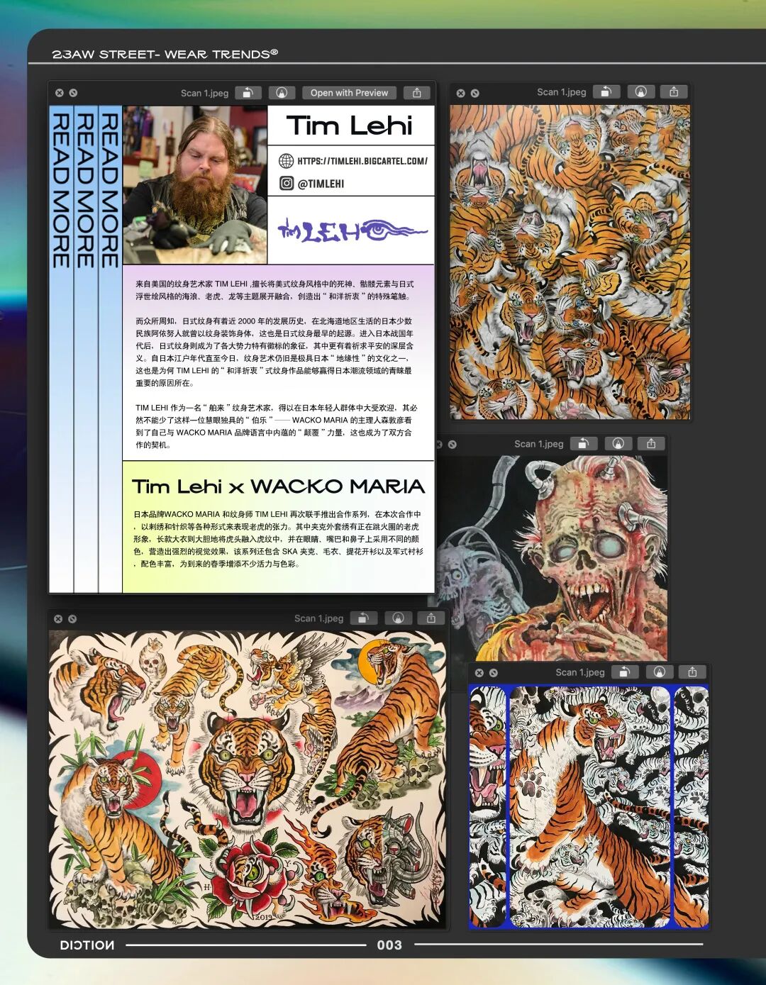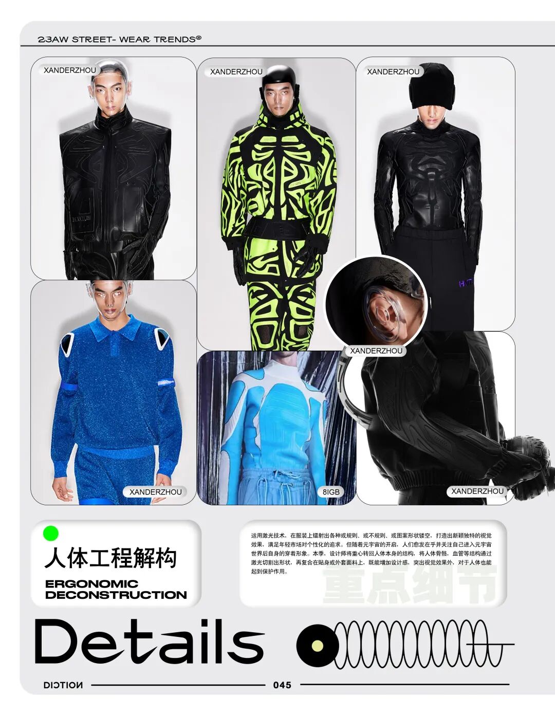 《2023秋冬男装潮牌趋势》囊括了潮流文化地域划分和发展趋势、潮流关键词、跨界联名情报,并且结合世界潮流地域划分和当下重点风格导向划分总结出:『数字化游民』、『亚文化碎片』、『西海岸新贵』、『东方新浪潮』、『无性别时尚』、『城郊漫步者』6大重点趋势分类。
