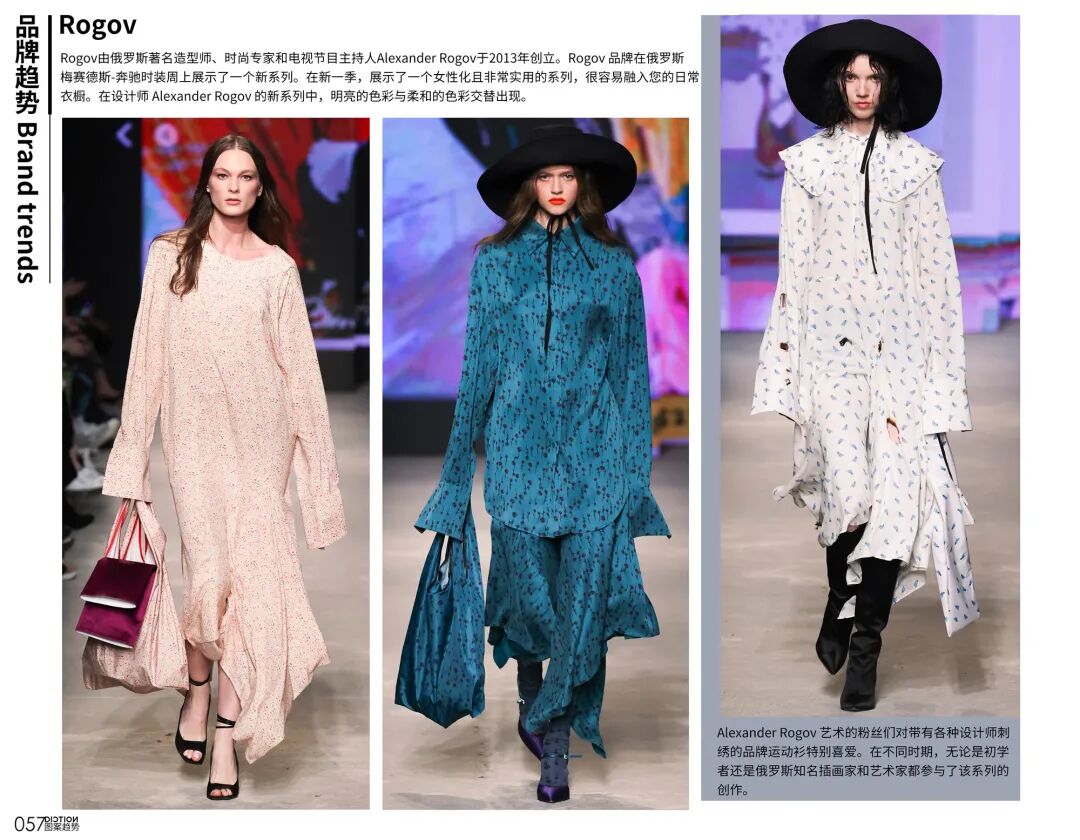 Rogov 由俄罗斯著名造型师、时尚专家和电视节目主持人Alexander Rogov于2013年创立。Rogov 品牌在俄罗斯 梅赛德斯-奔驰时装周上展示了一个新系列。在新一季,展示了一个女性化且非常实用的系列,很容易融入您的日常 衣橱。在设计师 Alexander Rogov 的新系列中,明亮的色彩与柔和的色彩交替出现。印花中也出现了各种变化:条纹、格子和波尔卡圆点。不是没有超时尚的东西:橙色夹克,系带领,喇叭裤,不对称 雨衣。在带有花卉印花的精美连衣裙上,穿着超大西装夹克。模特们手中拿着类似工艺袋的购物袋和手拿包。