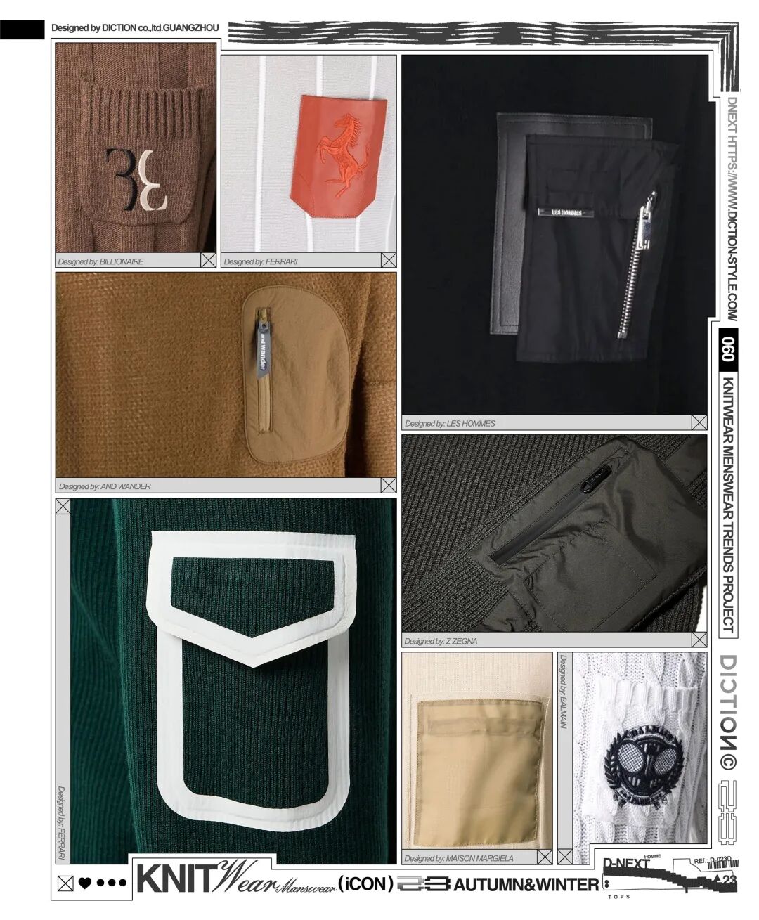 口袋造型作为服装设计中最常见的设计元素,在针织毛衫上也是必不可少的。无论是贴布梭织口袋,还是贴皮胸袋,还是在口袋上做压胶,绣花,印花工艺等效果,都能大幅度地提升单品的造型感,提高时尚度。