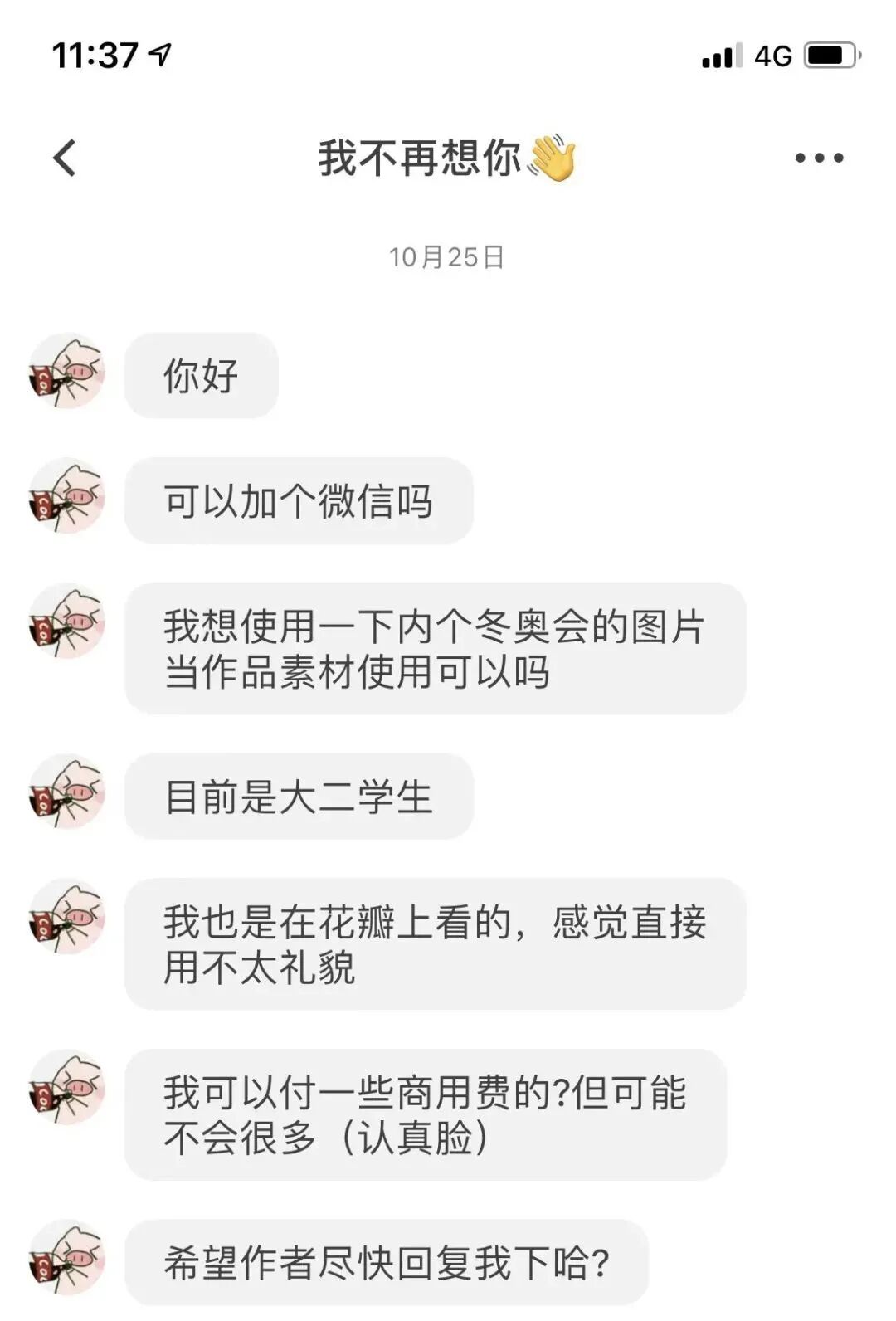 我的花瓣后台突然收到一条私信