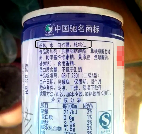 有水,有白砂糖,有核桃仁,有多少?不知道!等等,奶呢?你的奶呢??好吧,你从头到尾都没说过有奶,名字也是叫核桃乳,是我错怪了!你只是符合第4条,像奶汁的东西……
