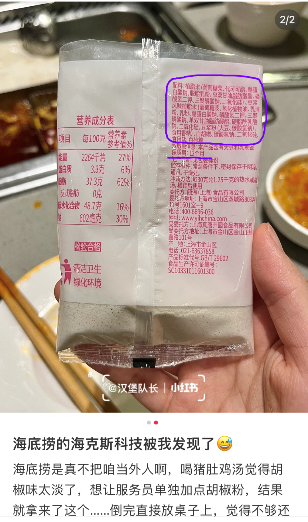 写完文章我看了看中午火锅里的毛肚配料表,心想毛肚应该没有问题吧?