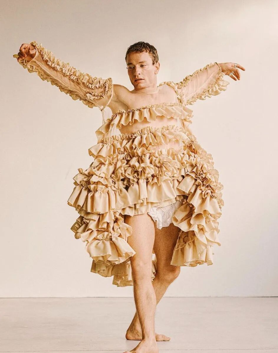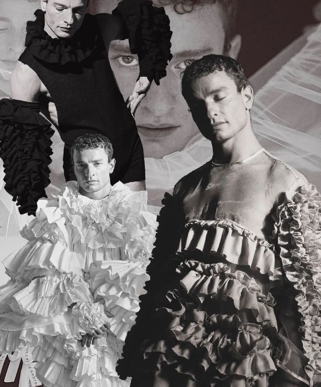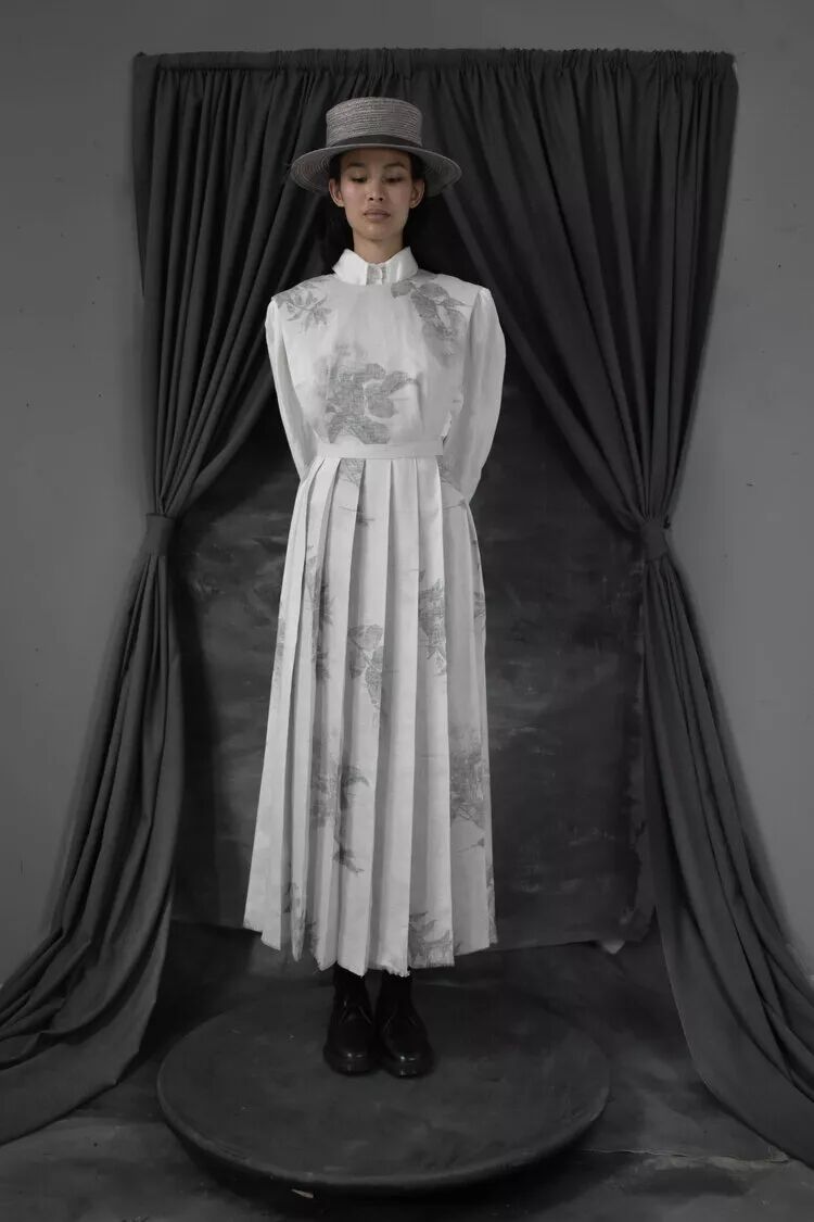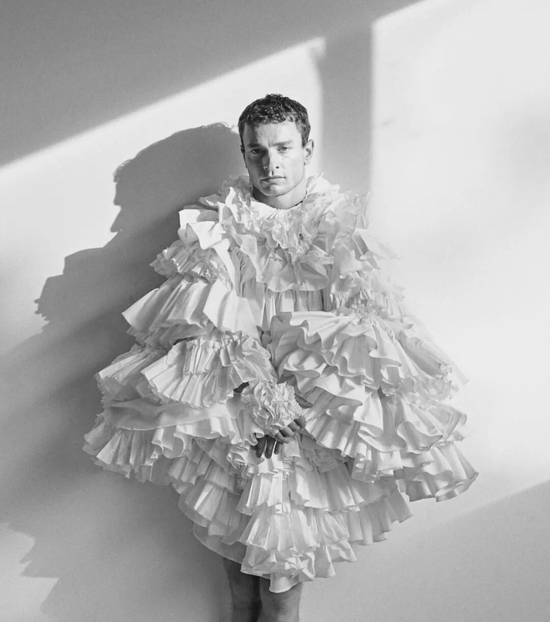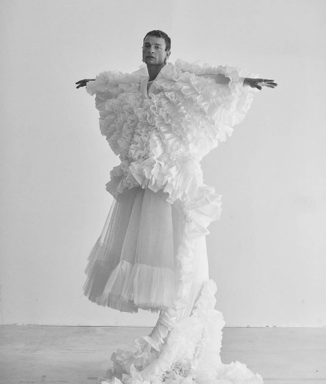 他将自己的文化和极具普通的“窗帘”融为一体,创造出纯白色的浪漫梦境,不规则的褶皱、大小交错的荷叶边,浪漫的蕾丝面料,丰富的垂褶布堆叠出戏剧化的三维效果,在风格上体现出前卫夸张的现代高科技特色。