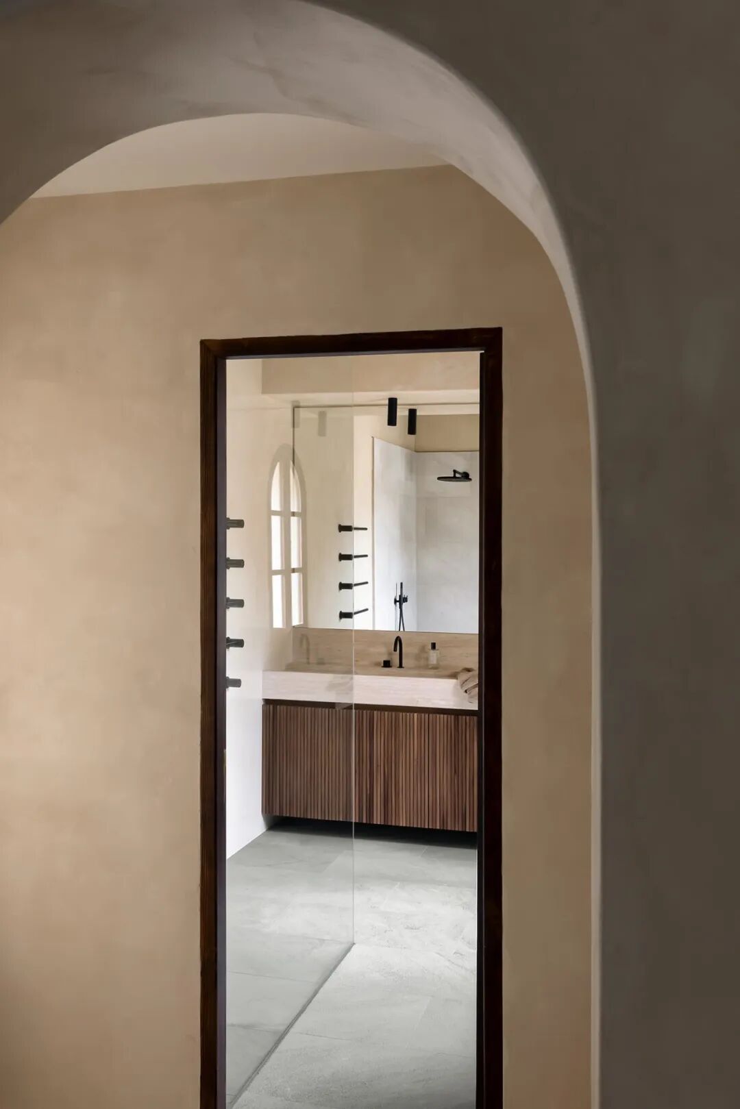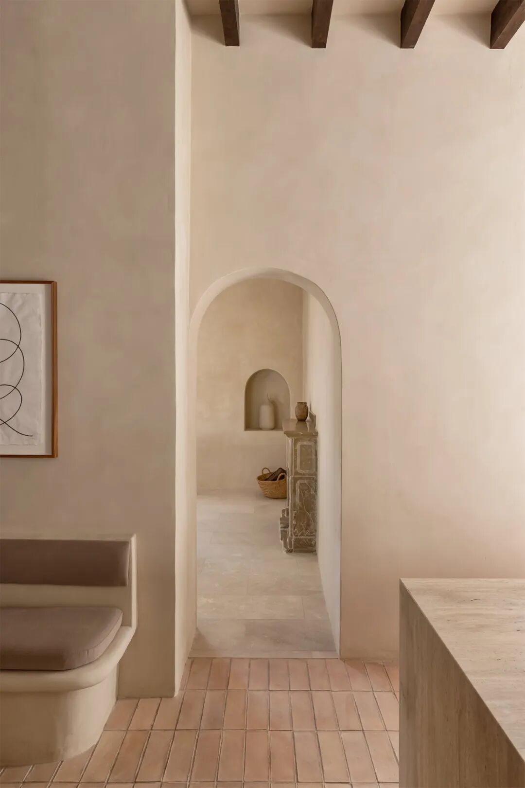 一处客厅内能看到楼道与拱形门,形成了柔和与利落的协调画面。