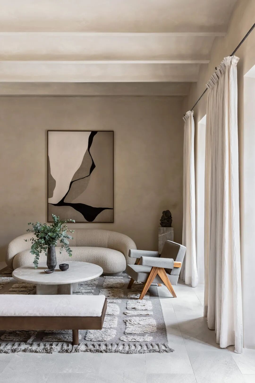 设计师想要以独特的风格将其打造成独一无二的生活空间,采用低调的装饰艺术风格主题,融合当地的传统风格;在空间内外使用天然材料,以朴实的色调创造出充满戏剧性的样貌。