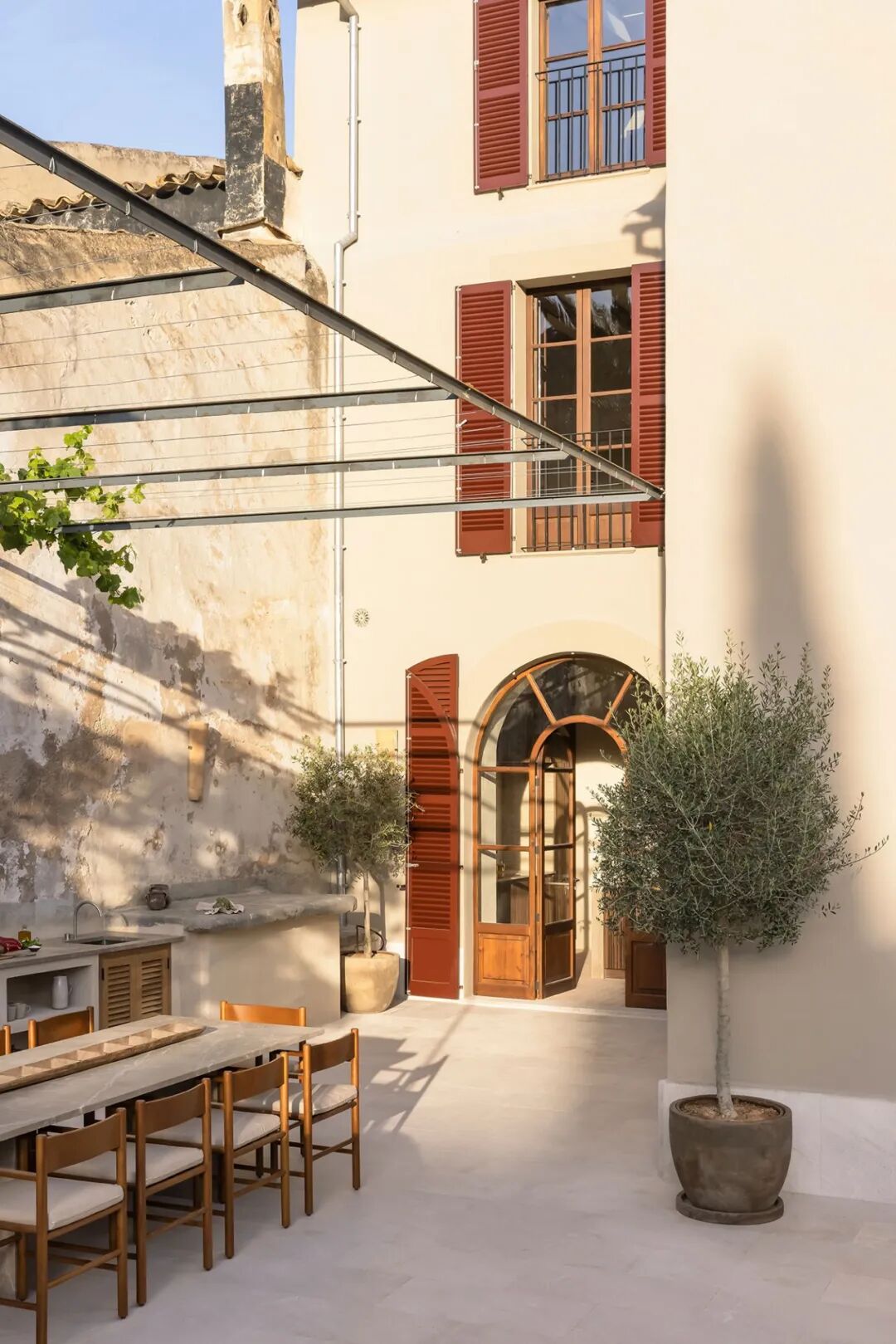 户外庭院将原有建筑的斑驳痕迹全都保留了下来,让人记得这栋房子的历史。