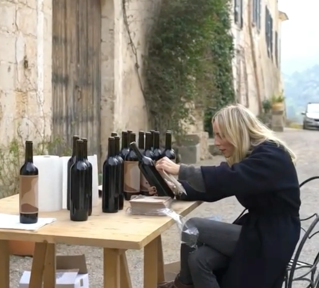 设计师重新定制了新的酒标,一个个手动贴到老的瓶身上。