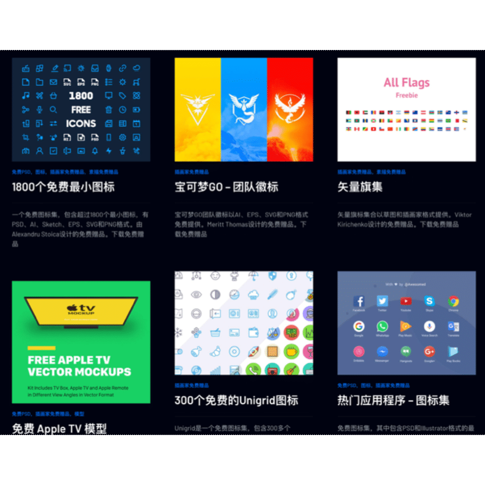 一个囊括了全球设计师创作的设计资源网站,包含字体、PSD文件、UI套件、Figma 资源等,看了一下还是有很多不错的素材可以在日常设计中用到,素材种类多,质量都还不错,而且可以把源文件拿来练手且分类详细。