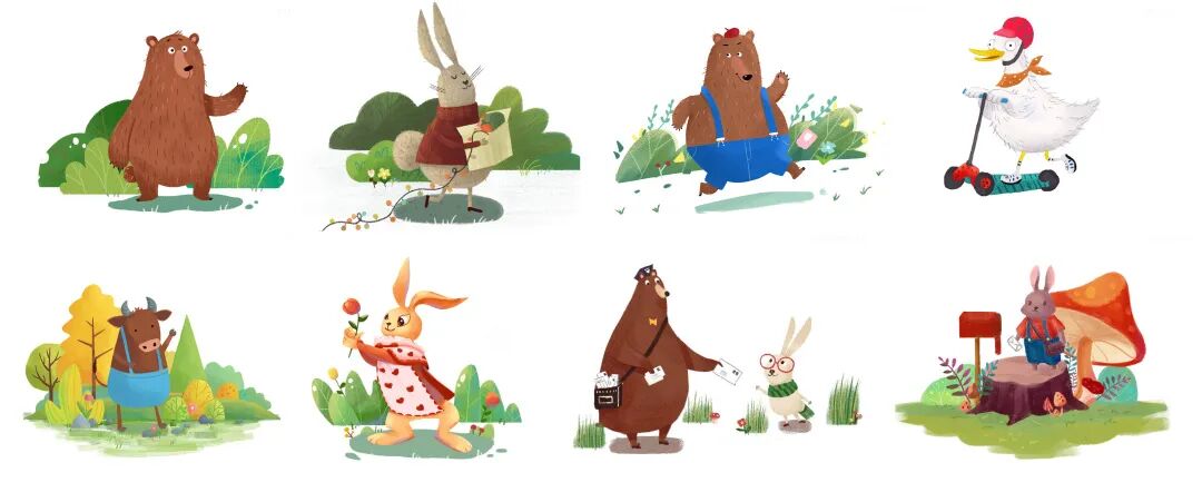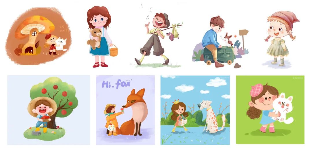 此外,它的用途也非常之广,比如咱们平时常见的儿童绘本、儿童读物、动画片等,都有儿童插画的影子。
