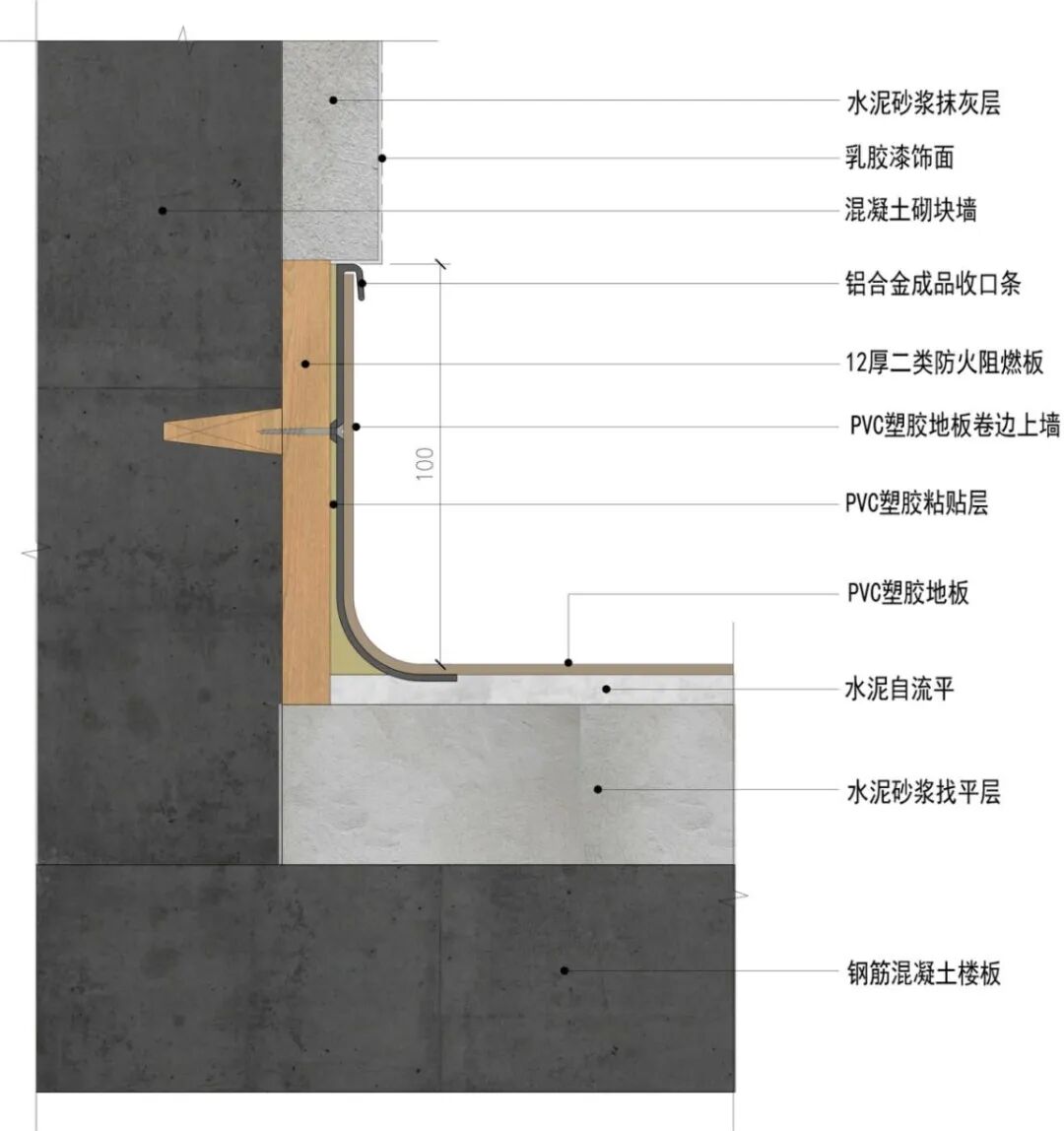 另外,踢脚直接采用和地面相同的材质一体化设计,能减少积尘缝隙便于清洁打扫。