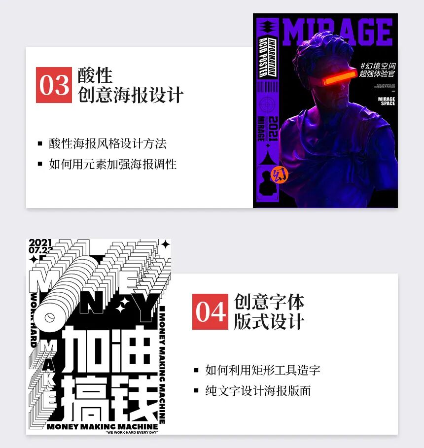 7天的课程,用7个海报设计案例,带大家学习平面设计中的版式与配色技巧,了解一些海报设计的实用技法,可以举一反三帮助大家运用在工作中。