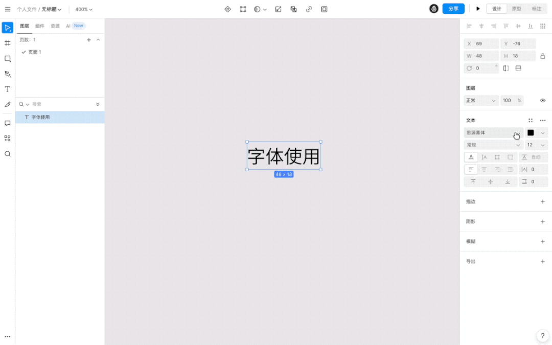 使用方法同样非常简单,在字由客户端内激活字体后,回到即时设计刷新页面就可以开始用了。