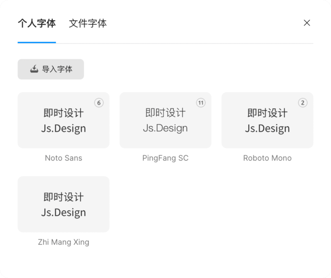 除了将已有字体文件上传到云端储存,即时设计还支持安装「字由」插件,快速接入字由提供的 3000+ 可商用字体。