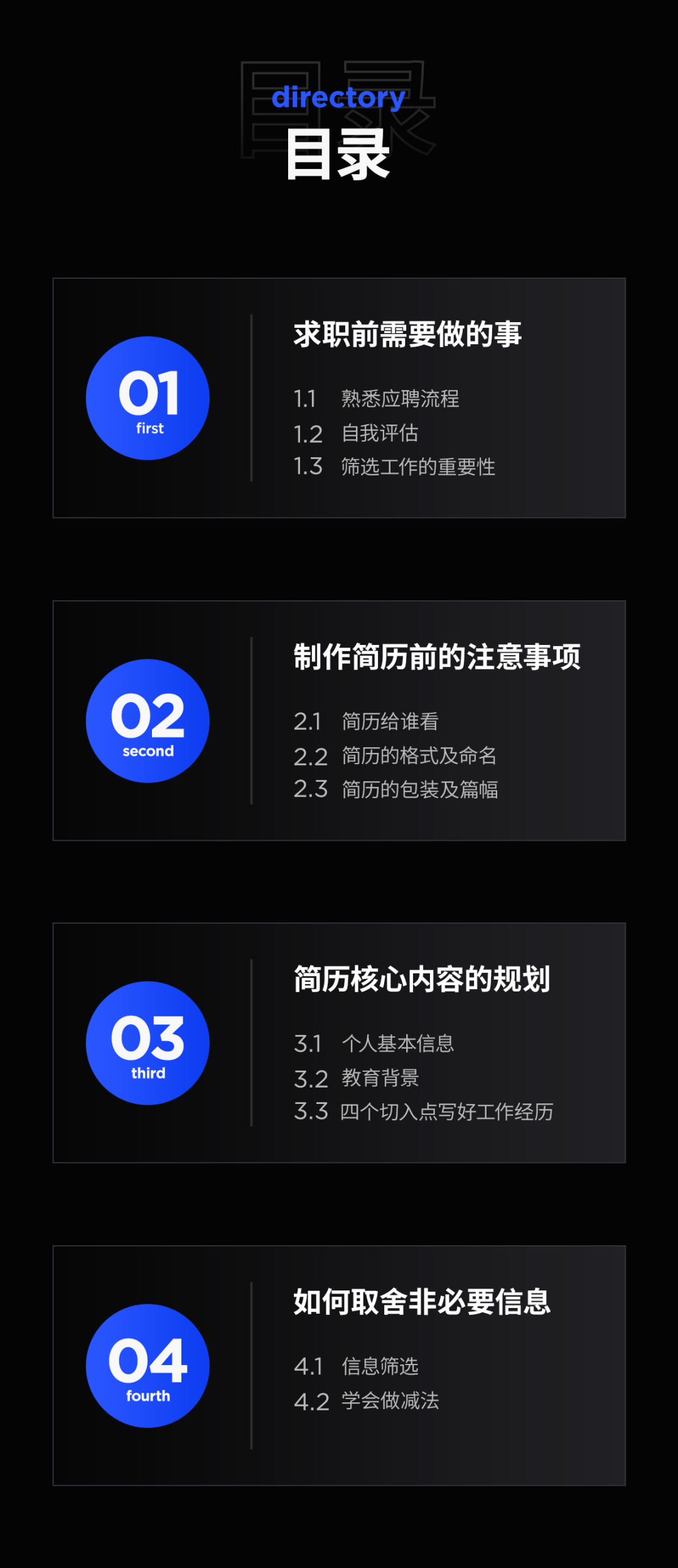 关于设计师如何写简历,本篇文章从以下几个方面全面讲解,先看下详细的目录: