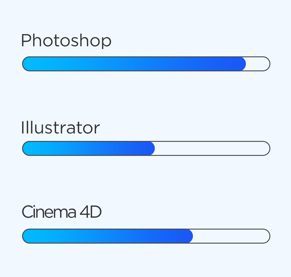 比如很多人喜欢用百分比或者图标展示技能熟练度,比如:PS能力80%、AI能力60%、C4D能力70%等等,这没有任何意义,HR不明白什么意思,部门负责人也不会看。