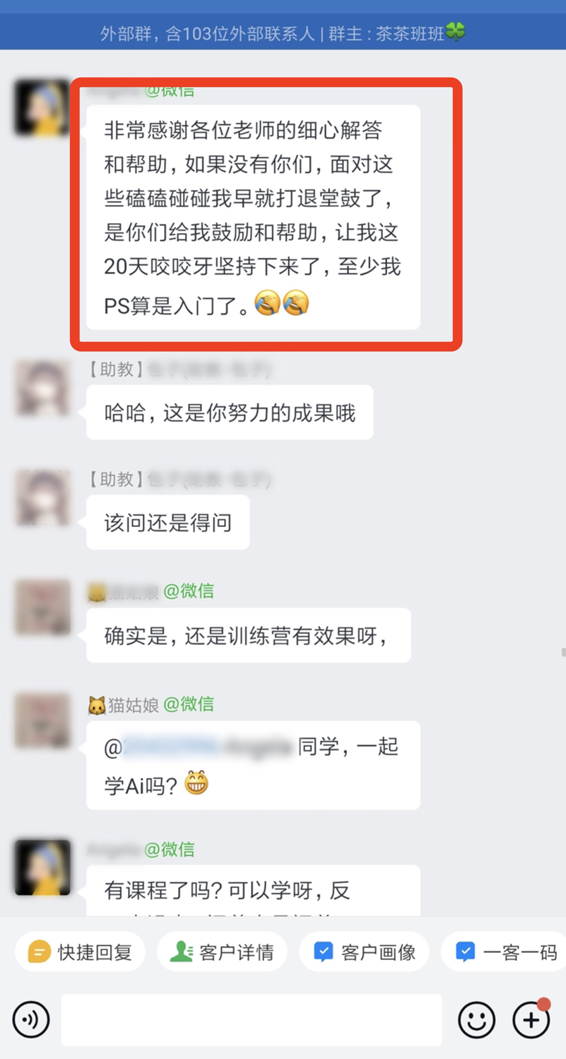而且,我们陪练营群里的氛围特别好!大家会随时分享自己最近看到的好作品、在一起交流学习、互相鼓励!也有基础比较好的同学会帮忙回答大家的疑问,一起加油一起进步!