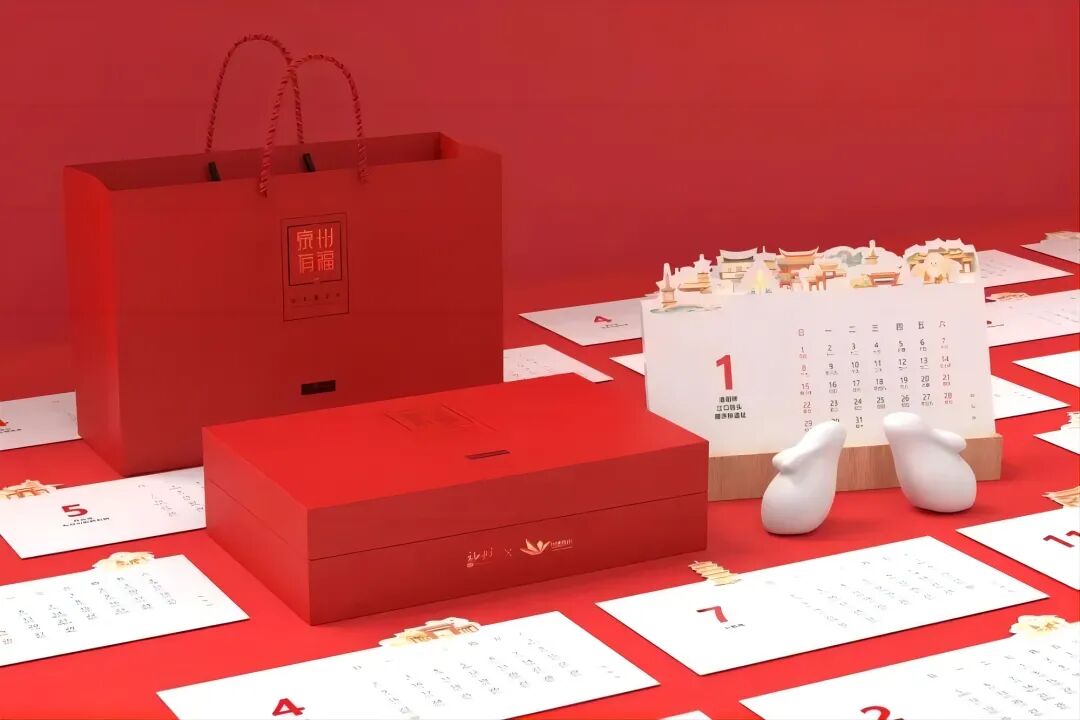 设计团队从“玉兔”这一祥瑞主题出发,以故宫博物院珍藏文物为设计灵感来源,复现工艺繁复精美的剔红漆器、清代冷枚作品《梧桐双兔图》等文物的精妙之处,推出“玉兔春晖”新春福盒,礼盒工艺考究,内含春联、门神、福字、红包、春条、贴纸、明信片等10余款产品,以极佳的观赏性融合新春祈愿,为大家献上新春祝福。