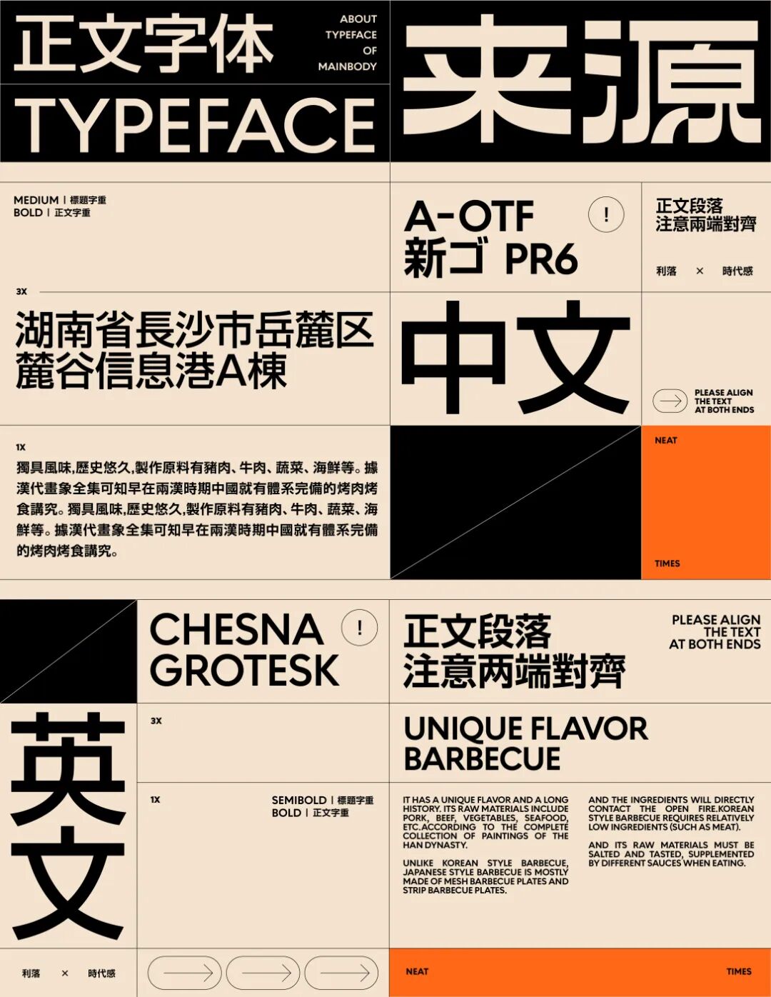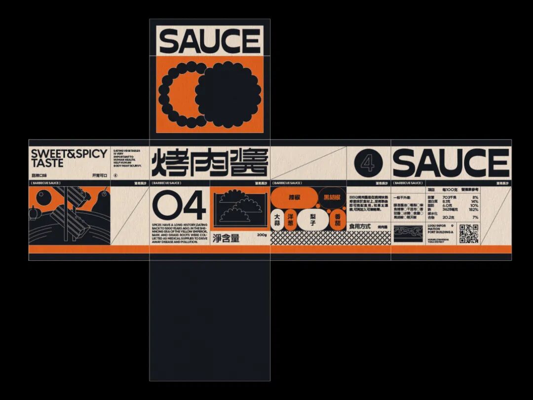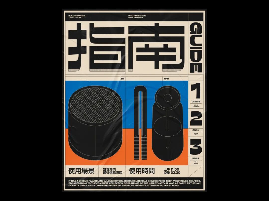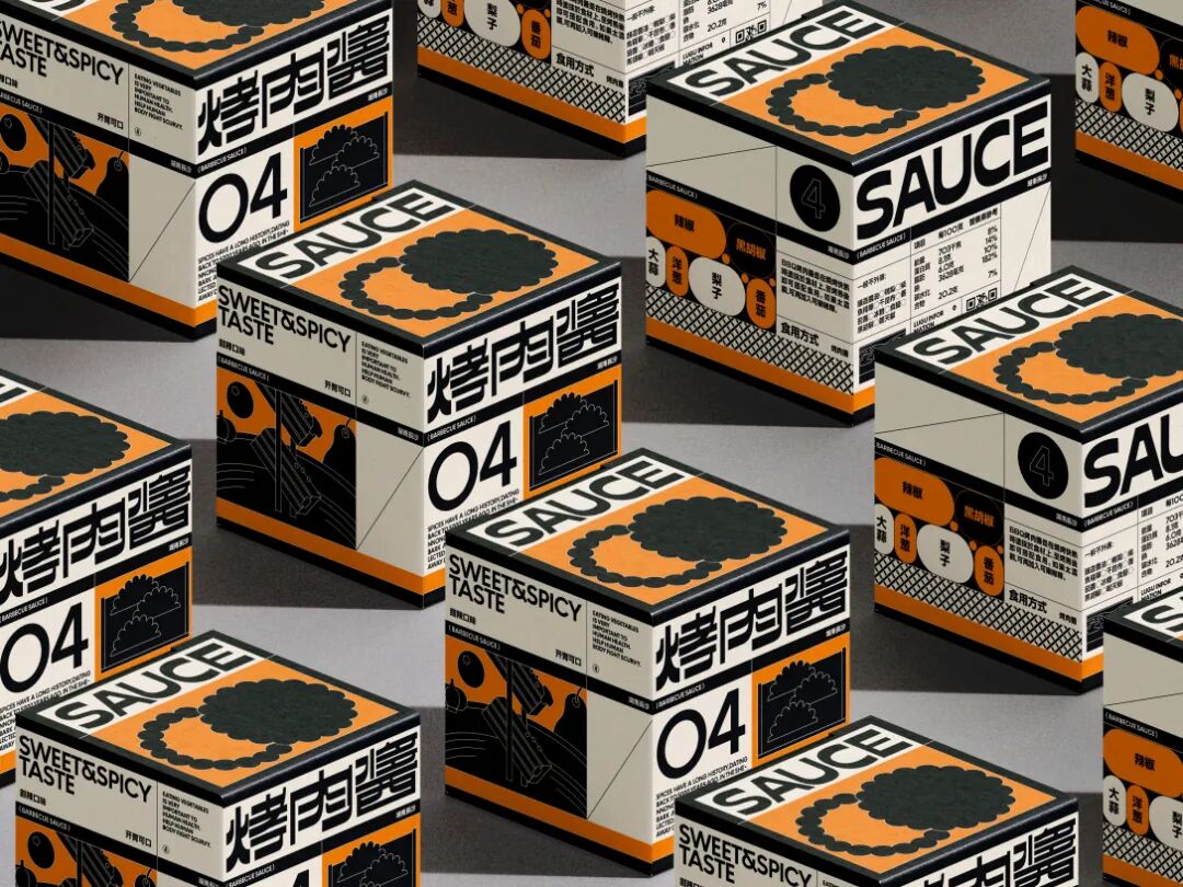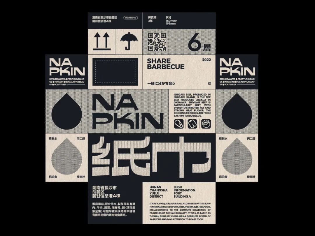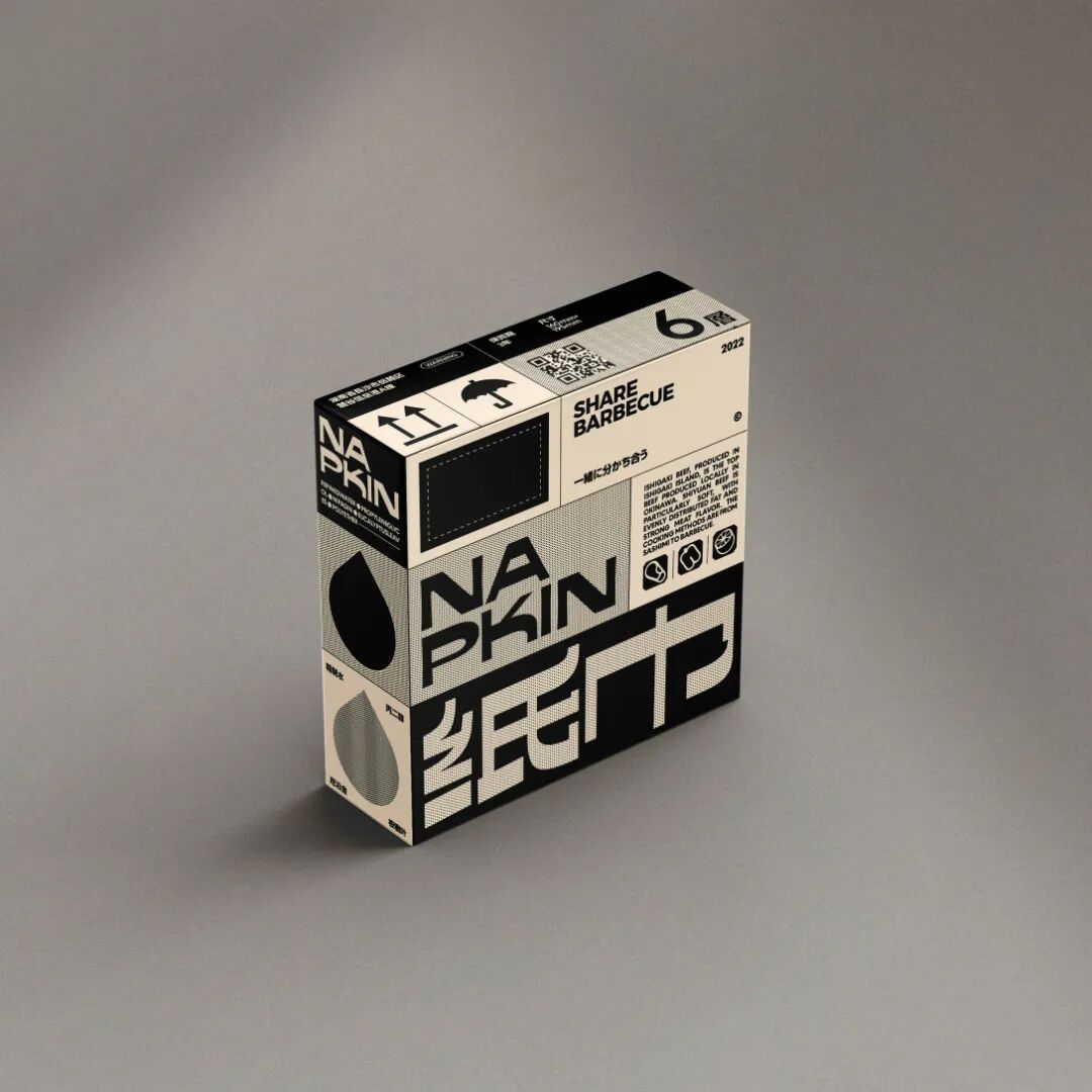 食块烤肉是一家创立于长沙的烤肉品牌。在设计上,我们从“现代复古”概念中出发,利用不同密度的网点带来不同灰度的效果进行突破。同时在配色上做了比较大胆的尝试——仿旧纸色+黑色+高饱和品类色。以及随着物料灵活拉伸的美术字、黑白图形搭建出特别的、统一的整体视觉。
