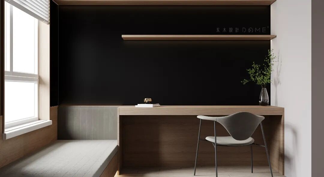 The single black background wall is more calm and noble, and the warm natural wood color forms a strong tonal contrast with black, which shows the elegance and uniqueness of the space.