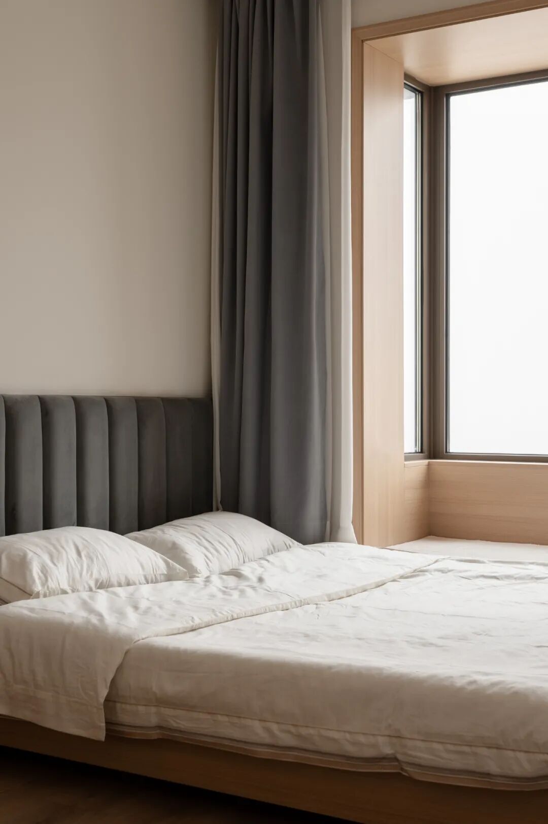The master bedroom abandoned the traditional layout, using the design of the platform, The walk-in dressing room meets the owner's daily storage and grooming needs. The master bedroom space is more open and simple.
