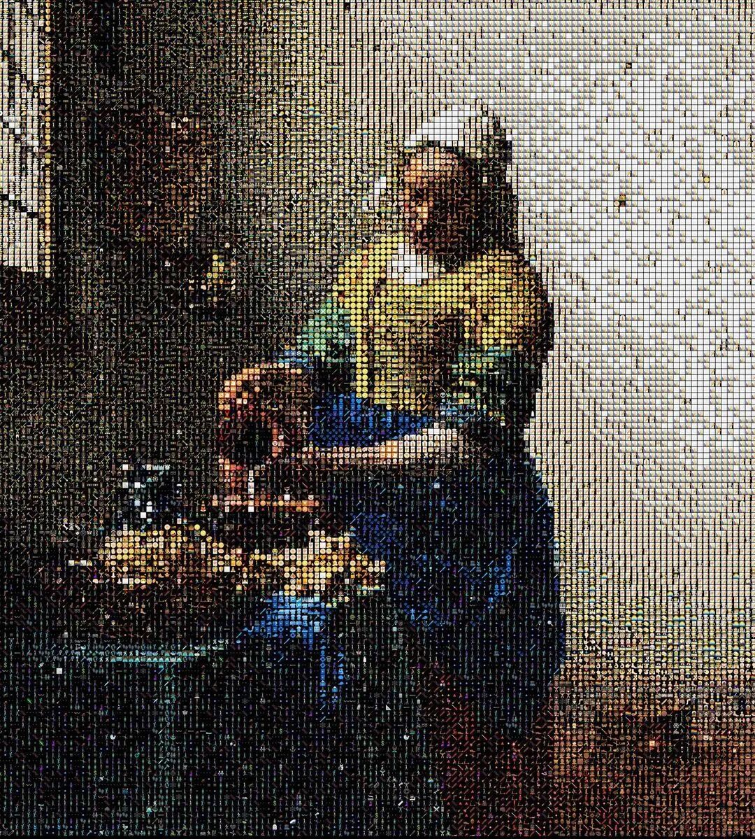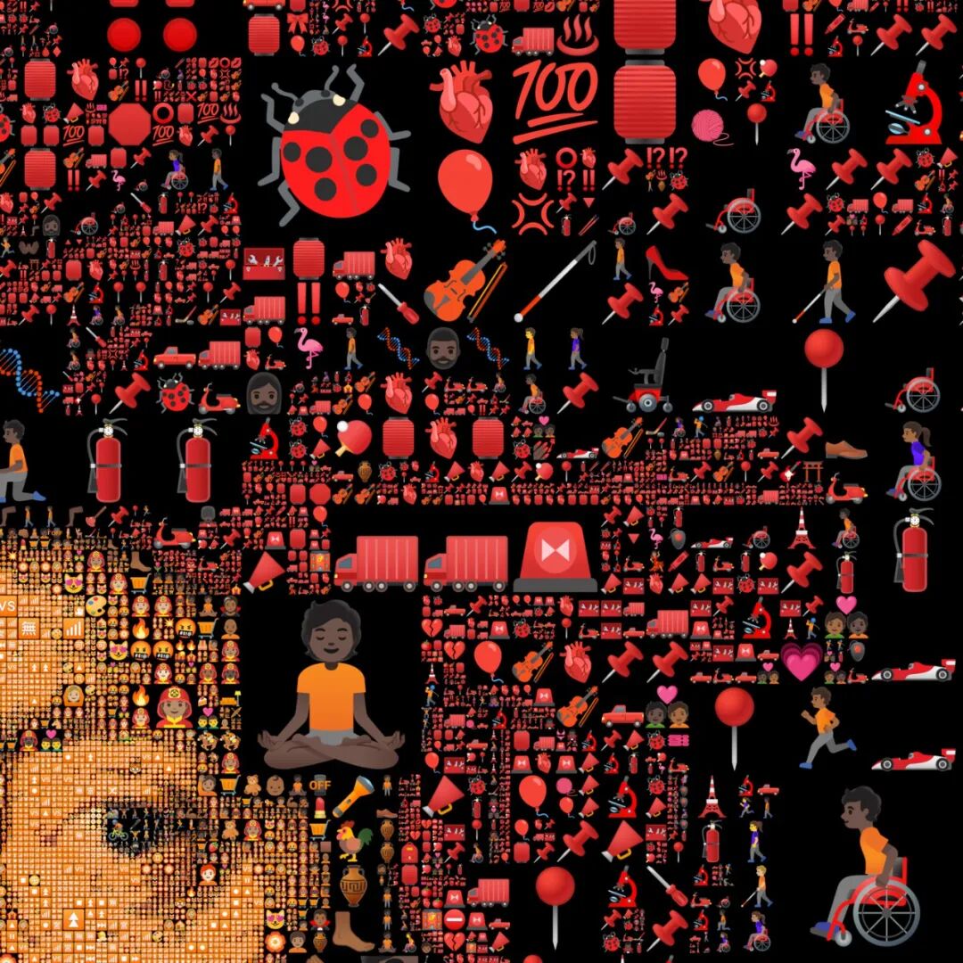 不要小看这些由表情符号组成的画作,虽说,它们是由表情符号组成,但是,这些画作并不缺少细节,像是人物的眼睛,设计师就使用了上百个表情符号将它们重现出来,把这些由表情符号组成的名画作品放大后,一个个表情符号也值得我们慢慢欣赏。艺术家在创作过程中,不断填充这些表情符号,耗费的时间与精力,也值得让人敬佩。