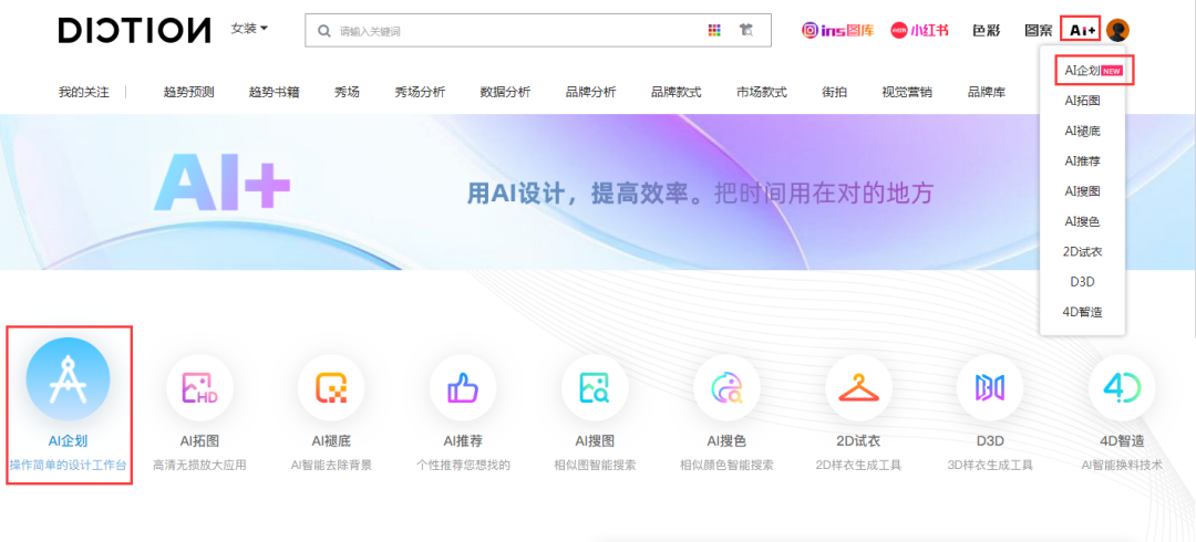 点击「AI+」-「AI企划」按钮进入