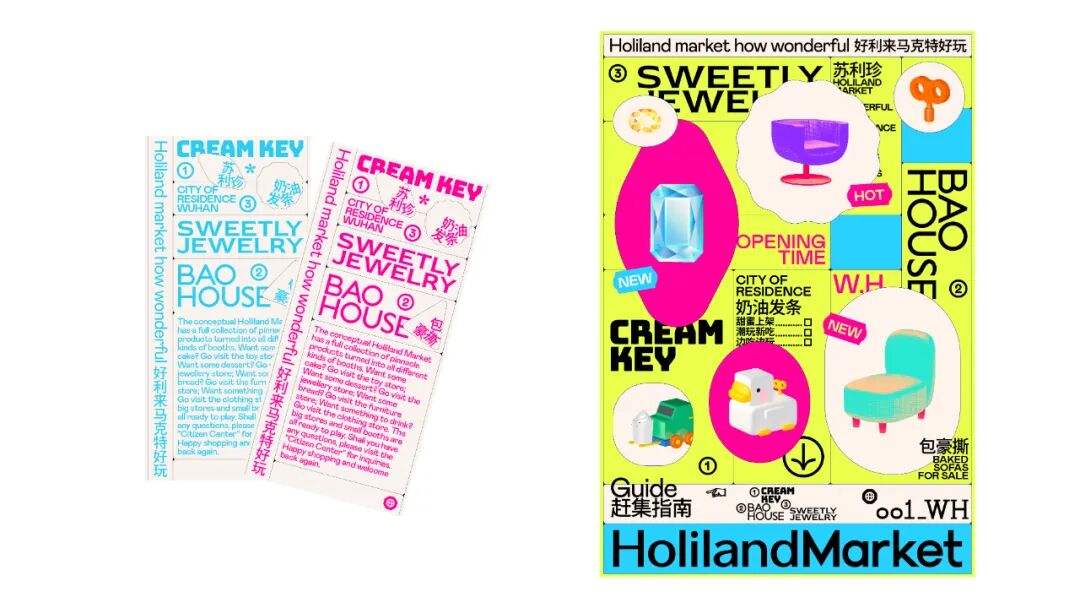 Reflexdesign 条件反射为这些商品建立了产品型录,市集采购指南等一系列市集相关整体视觉。他们还为 Holiland Market 打造了一条市集的宣传动画,让顾客沉浸的体验market这一主题。