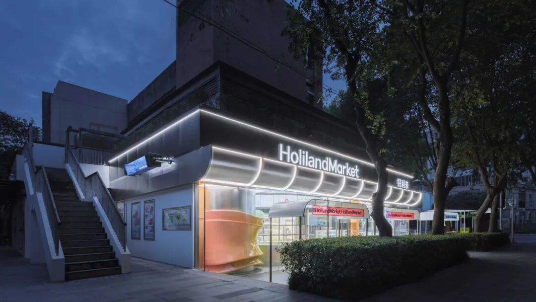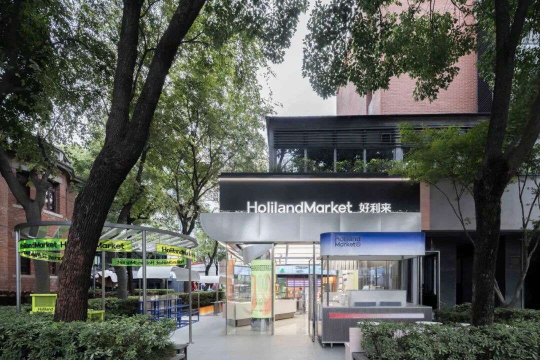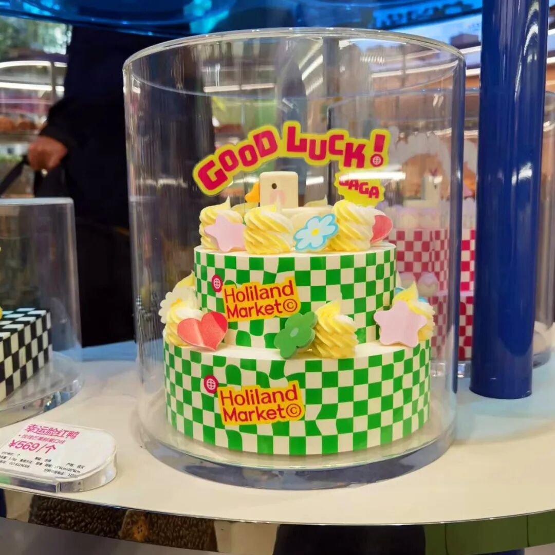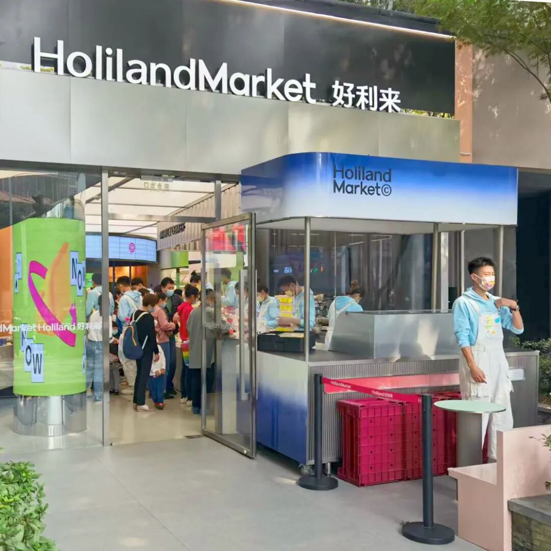 2021年10月底的时候,designcola 小编在汉口江滩散步的时候,在熙熙攘攘的人群中一眼就发现有相当一部分游客手里拎着惹眼的手提袋,专色印出的 Holiland Market 字样尤其醒目,看袋子就知道这家店不一般,高德地图一搜,几百米远的武汉天地开了家好利来的主题店,于是步行前往……因为到店的时候到处都是人,出于对疫情风险的担忧,小编匆匆买了一些甜品拍了几张照就走了。