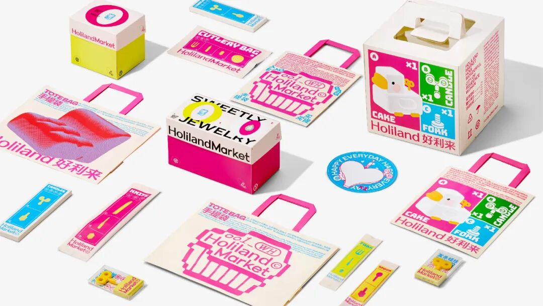 对于这场临时又短促的探店,小编已经充分感受到了 Holiland Market 在整体的视觉呈现以及产品上面的十足用心,视觉设计十分灵活、个性、潮流,结合产品命名对产品形态进行了再创新,包装上用了跳跃性的色彩搭配……